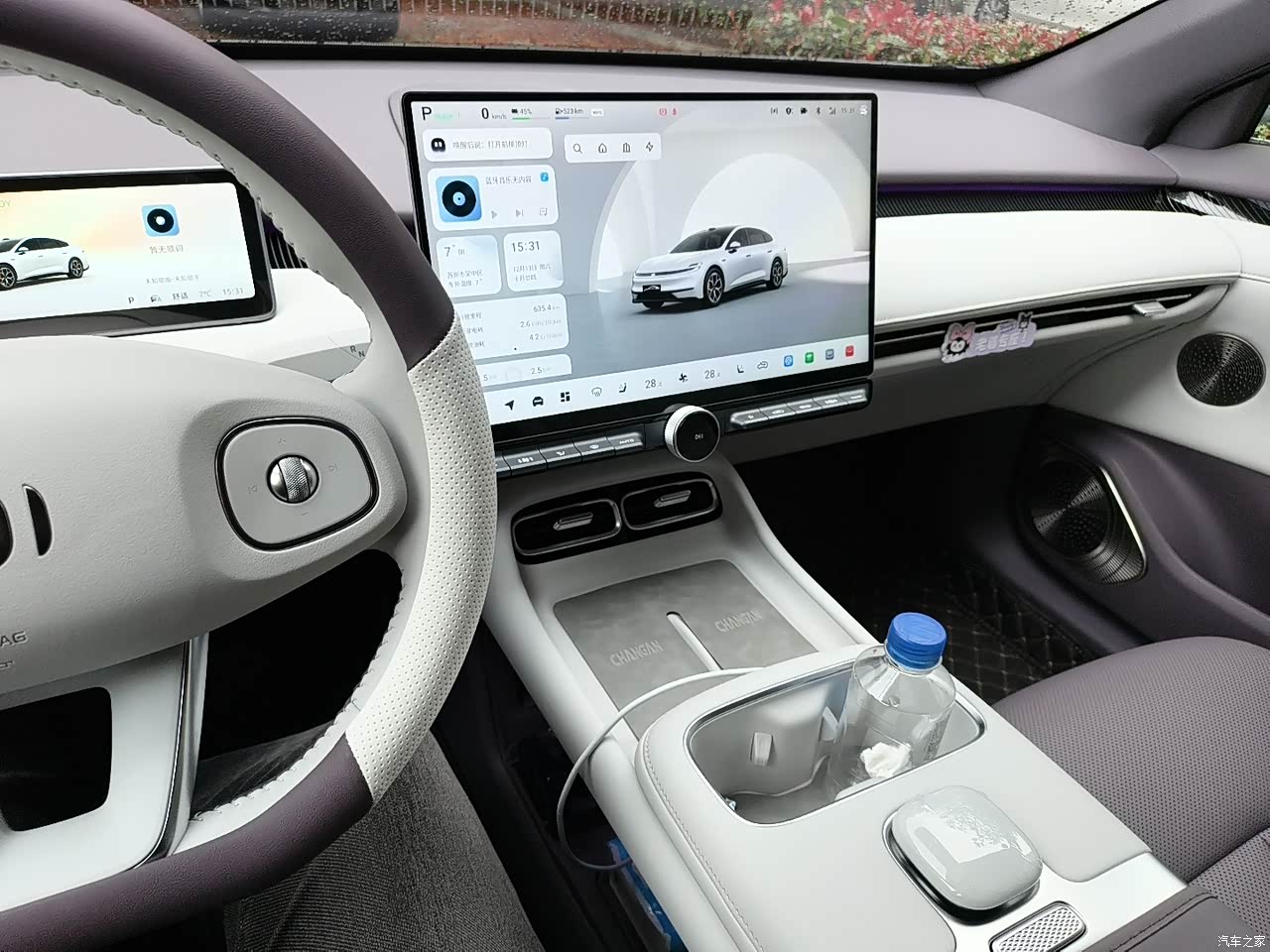 内饰方面软包蛮多的,氛围灯也不错!用着也是嘎嘎舒服!空调效果也不错,冷热都很快,不是热泵空调,不过对我来说没啥影响!