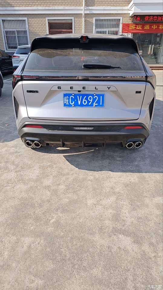 外观颜值还是比较受看的,车头看过去大气稳重,车位看过去略带一些运动时尚。颜色选择的是银色,这个颜色我看卖的也很不错,再加上银色也比较耐脏后期打理起来也简单省事些。整体来说博越外观还是比较符合我的审美观点的,也符合我这个年龄段。