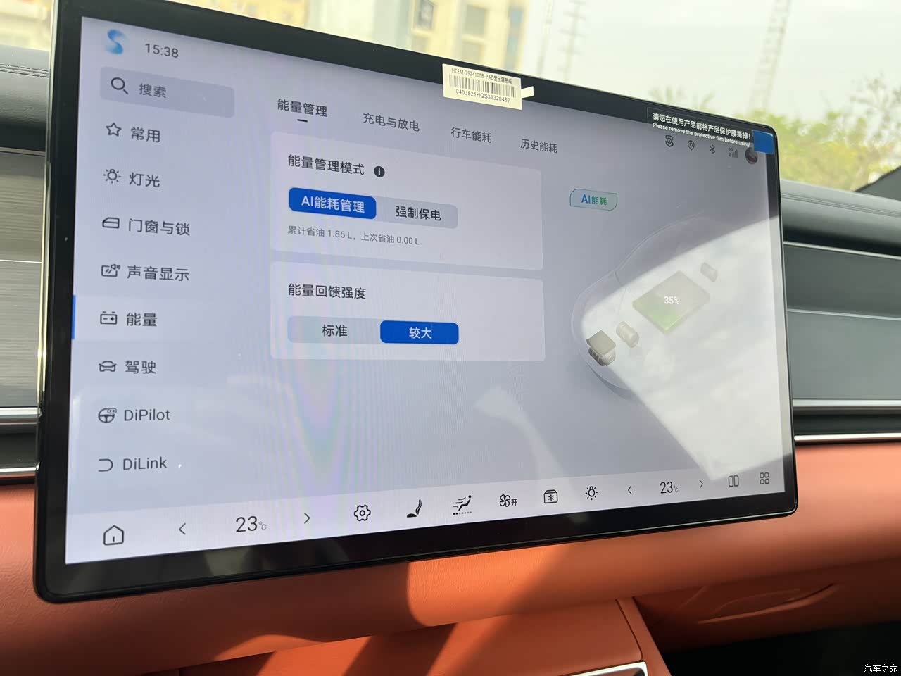 内饰的做工用料是完全没有问题的,皮革材料很柔软,而且做起来更加的沙发其实是没有太多区别的,就是这个新车的内饰味道能够明显的感觉到有异味,可能是因为车子比较新的关系