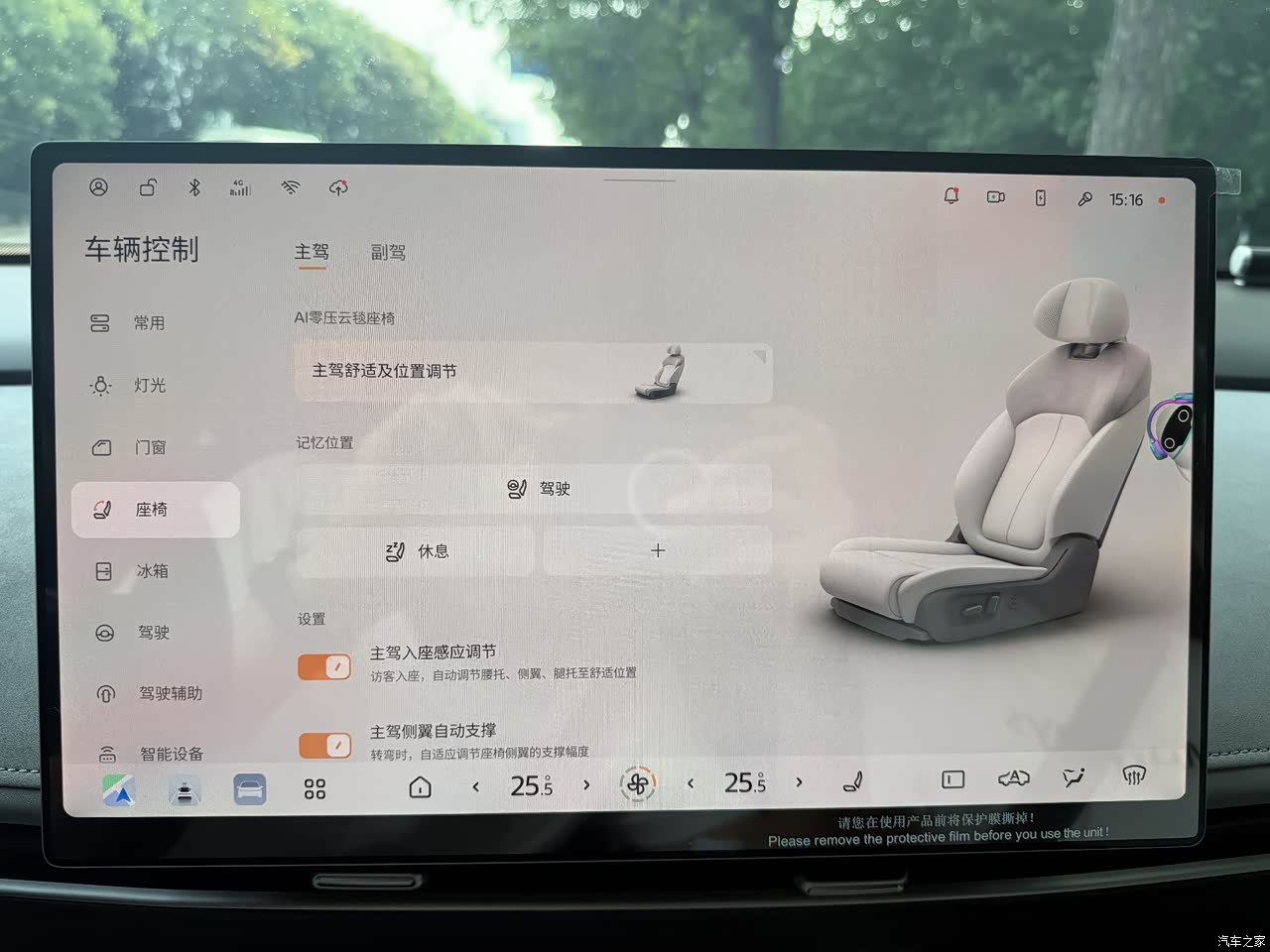 内饰主打实用,我比较喜欢的就是冷暖冰箱,真的没想到有一天车子里还能带冰箱,中控屏操作顺手,支持语音控制,但并不灵敏,有的时候开车集中注意力的时候调空调、开导航不用手忙脚乱,分心少还安全;车机还能 OTA 升级,之前升级后新增了亲子空间和哨兵模式,实用性更足。不过内饰也有缺点,部分饰板是塑料材质,质感一般,新车提回来时异味有点重,放了好久炭包才慢慢散掉,偶尔头枕扬声器还会有轻微电流声,略影响体验。