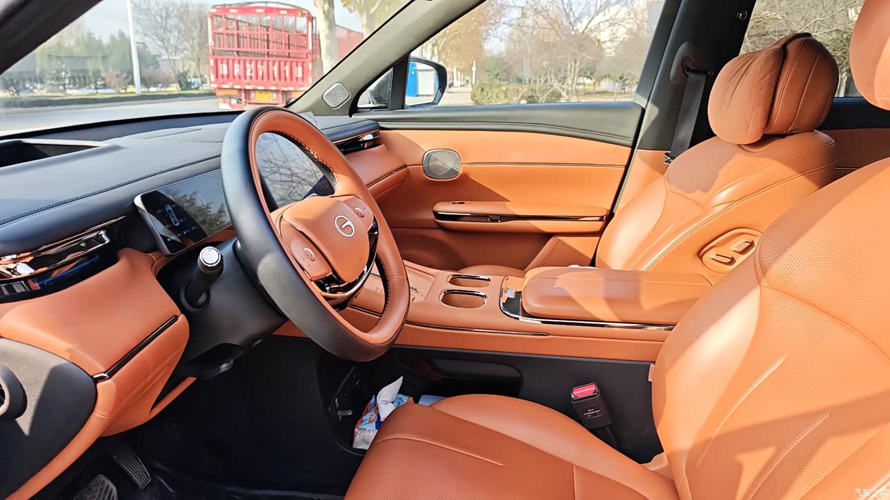 内饰我选择了棕色的,黑色的感觉有点压抑,不如棕色显得车内的空间感强,这台车值得夸下的触手可及的地方几乎都是软包,特别是座椅的皮质确实很好,比较软,提车的时候新车没有什么异味