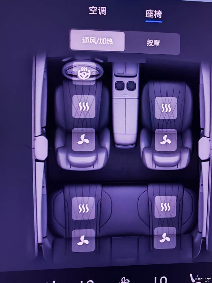 氛围灯多加颜色可调节, 4座椅通风加热 加方向盘 对于我们怕冷的人来说简直是冬日救星,无敌啦。而且小桌板是实用性配置。