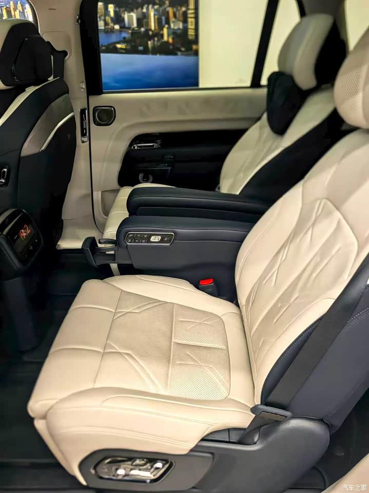 前排的大联屏特别对副驾老婆专座非常体贴,长途出行的时候追追剧就很方便。后排的头顶的电视简直不要太喜欢,可以用语音和妙控屏控制操作,也是非常便捷的,另外这个电视也不会遮挡视线和侵占头顶空间。再就是这个内饰豪华感足,大面积软包覆盖,触感细腻,搭配Naim定制音响,整体的内饰氛围感非常好。