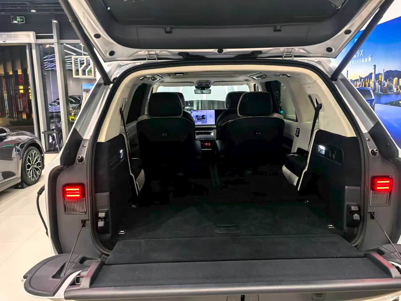 2+2+2剧院式的座椅布局,第二排和第三排的腿部空间都在一拳以上,像我一米七将近一米八的男生坐在里面空间都还是非常宽敞的。第二排的座椅支持零重力模式而且躺倒角度非常大,还支持一个全新的对坐模式,就像是高铁的座椅可以180度的旋转一圈,只不过这个是更加高级是电动旋转,旋转以后二三排就可以面对面交流了,这个真的很新鲜,用销售的话说以后可以聊天、吃饭、玩游戏。全车的储物空间也很丰富,全车遍布水杯架、置物架,中央扶手下面还有一个冰箱。后备箱也比较大。