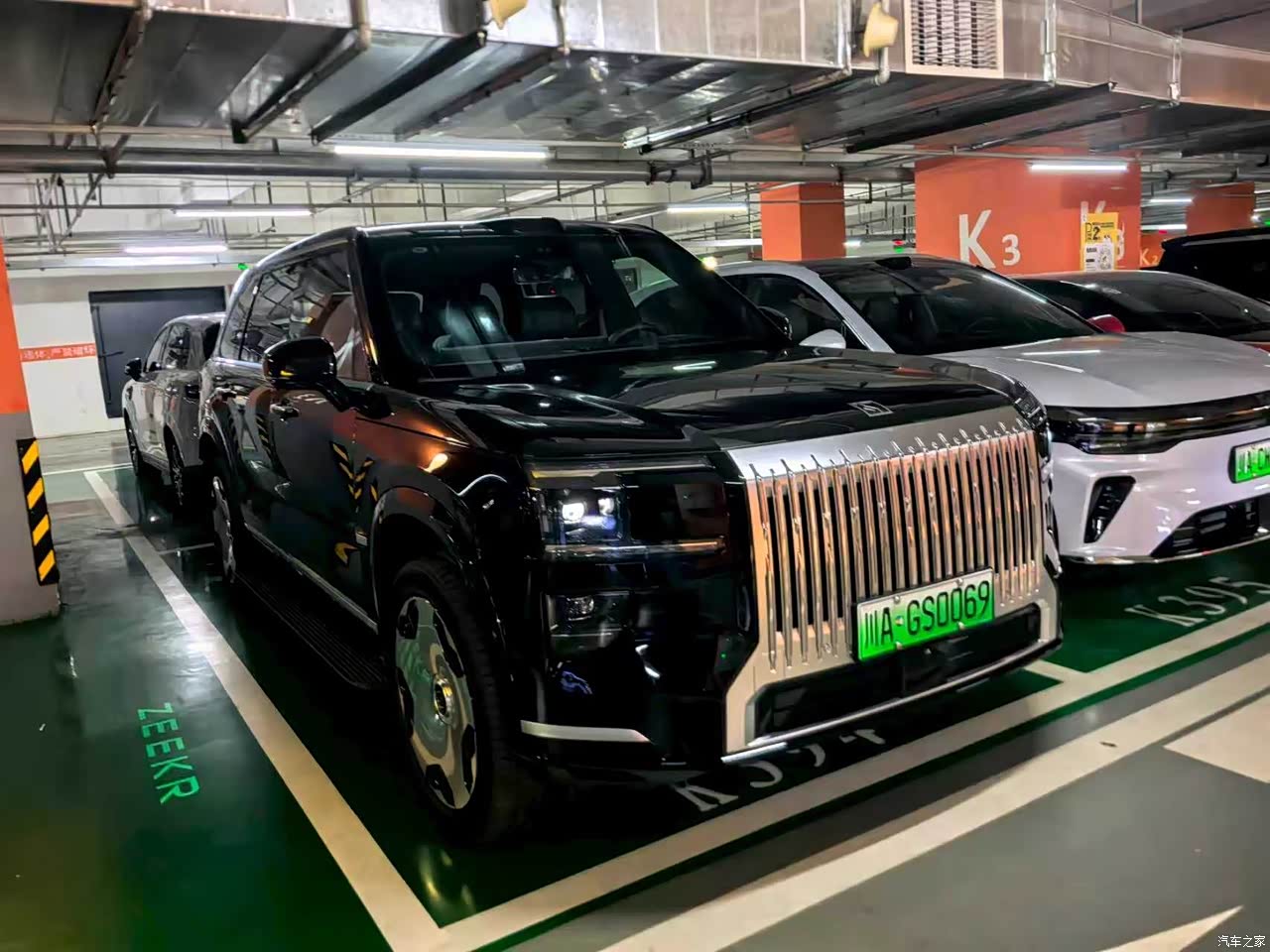 外面看着整车真的就很大,隔壁其它新势力展厅的车和它对比后就像是个“弟弟”。销售说这台车是全球最大的一体式前脸格栅借鉴了古代宫殿台基的设计,底部加宽的轮廓让车头显得格外稳重。然后两个大灯可以智能投影,可以投射出各种迎宾光毯。