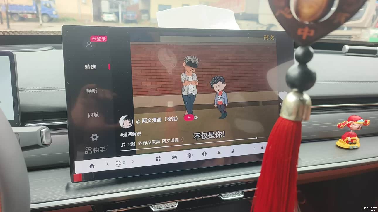 用着最费劲的是车机,屏幕大是大,15.6英寸的2.5K看着细,系统说是eπOS 2.0,上手之后小毛病不断,QQ音乐自己掉线,歌播一半停住,重登才继续,亮度自适应开着,进隧道或者傍晚光线下滑,屏幕不进黑夜模式,白光晃眼,只能自己去点,手碰屏幕在开车过程不算舒服,远程控温的时候后视镜自己开合,蓝牙钥匙贴身是贴身,反应不稳,走到车边偶尔锁不解,掏手机操作两三下才好。