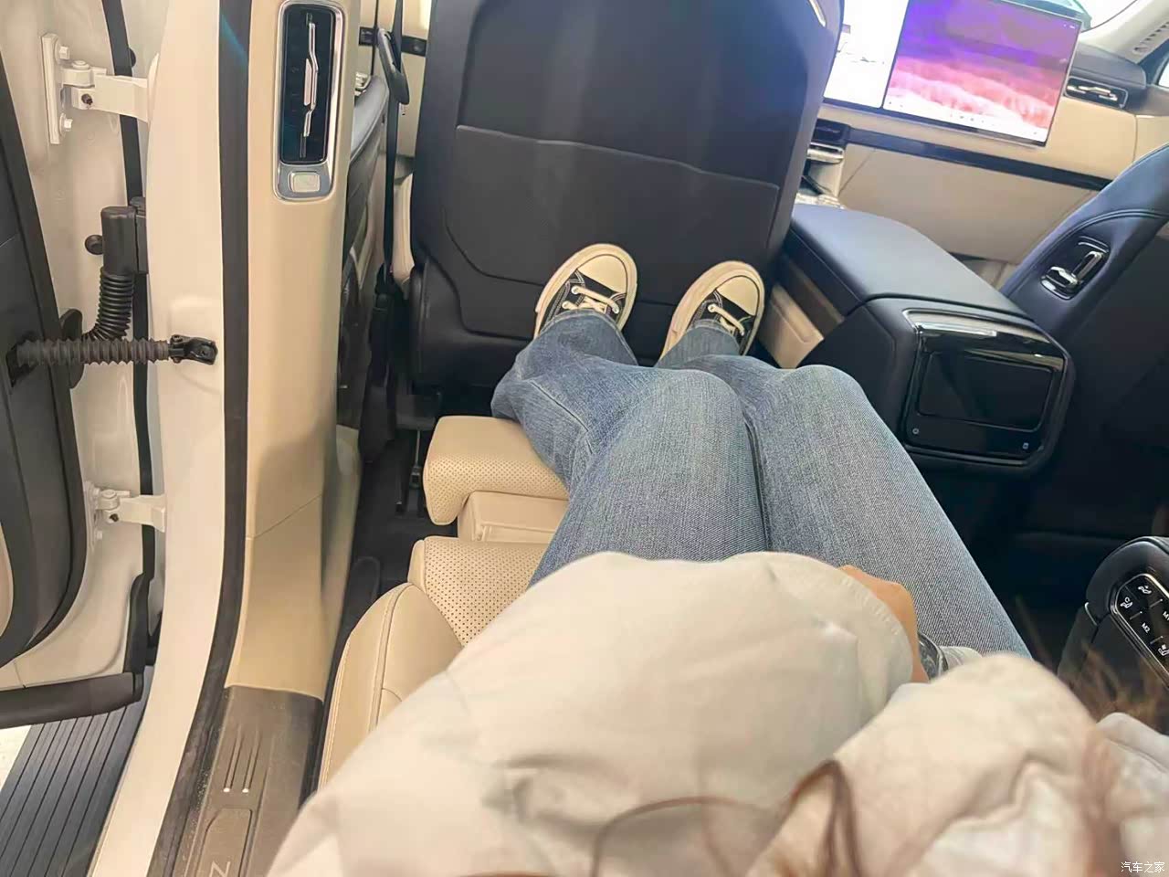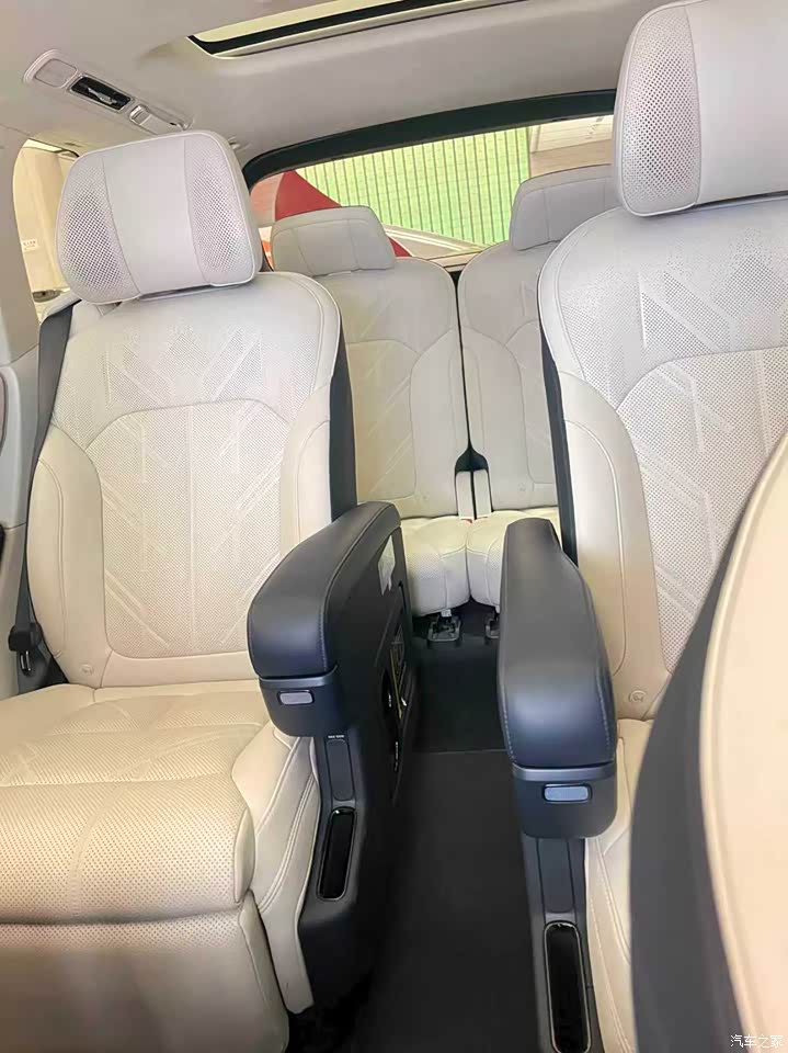 前排很宽敞,不论是驾驶位还是副驾位体验感都非常的棒,特别是左右两侧的横向宽度真的很大,我还是第一次体验到这么宽大的SUV 。中排电动座椅可以近乎平躺,腿托也非常的长,座椅按摩功能更是无敌,不仅是按摩的面积很大而且按摩的穴位很精准,稍微体验几分钟就觉得全身得到了释放。另外座椅的用料特别好,都是打孔的真皮,做工细节很到位,我和店员开玩笑的讲这个座椅单独拿出来卖两三万块钱都完全没问题。还有一点是我蛮在乎的,就是这台车的天窗面积非常巨大,而且是可以开启的,这一点我家小朋友可肯定会非常喜欢,以后去野外露营,晚上就可以抬头仰望星空了。