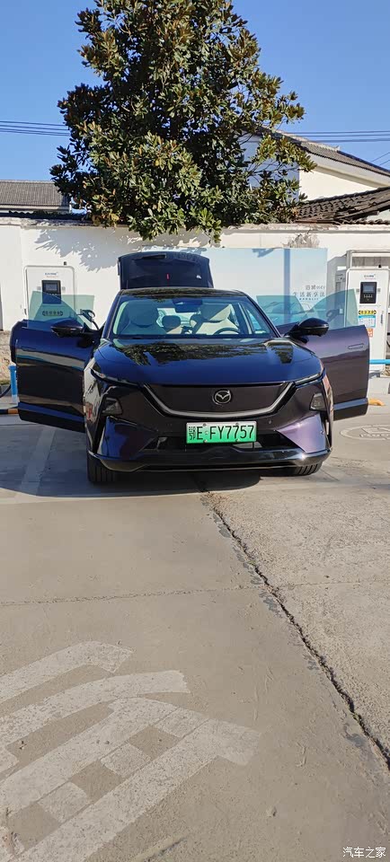 今年年初家里人就谈起要换车的打算,家里老车已经开了9年了,时间也有点长了,孩子也长大了不少,说老车坐着不舒服,问我什么时候换个新车,加上一直以来我自己也比较喜欢关注汽车方面的知识和介绍。加上国补多少可以节约一点开销,所以就把换车提上日程了。 偶然间看到马自达新车发布,记得好像是4月初马自达发布了一款概念车,当时就被他的外观给惊艳到了,直接种草了。后来官方又推出了一个膨胀金的活动,立马下定了膨胀金。经过长时间的等待,终于在9月26号官方正式上市了。看到自己的膨胀金直接涨到了1500多毫不犹豫在官方App上面第一时间下订了订单,经过20多天的等待,终于提到了车。 看到实车的那一刻,外观直接惊艳到我了,特别是车身的颜色。紫色带一点黑,在阳光下特别闪耀。加上风道的设计确实看着很特别 去到车内空间够用,一家5人出行比较合适。后备箱还可以放三个大行李箱加几个背包,妥妥的够用。没有显得特别拥挤。加上全景的天窗视野非常开阔。 内饰方面直接比以前老车提升了一个档。该有的智能化都有中控屏幕特超大,加抬头显示,用着很舒服,看着很符合我的审美。 目前已经开了1000多公里了,基本上都是纯电行驶偶尔会用用发动机,发动机在介入的情况下感觉不到抖动和声响,这一点要给马自达好评。 目前电池充满是200公里正常用下来的话基本上可以跑个175公里左右。总体的续航给于4.5分吧。 驾驶方面的话我开车一般比较快,前面有车基本上见车就超,左右变道,急加速刹车方面控制的都还可以,调校的我比较喜欢。 性价比这个方面怎么说呢?仁者见仁智者见智,总体来说我是比较满意,毕竟只有这个价格给到的配置啊!体验感受啊!都还是可以,物有所值吧!