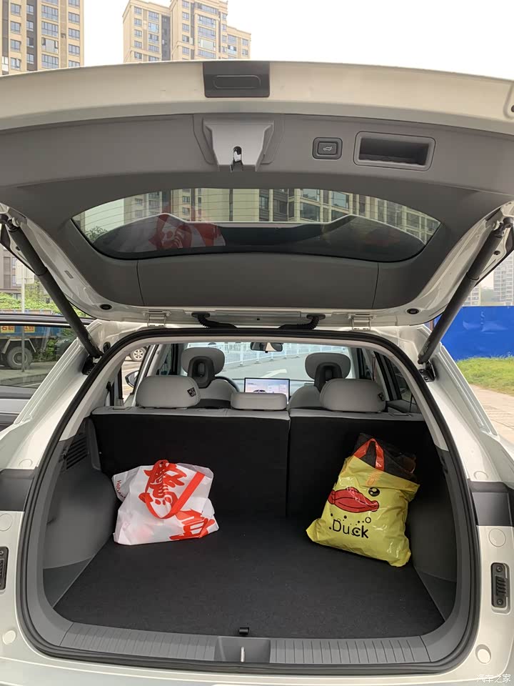 空间是这车的一大惊喜,也是家里人夸得最多的地方。别看它是紧凑型SUV,轴距有2750mm,后排腿部空间非常宽敞,坐后排还能轻松翘个二郎腿。后备箱常规状态就挺能装,日常采购的折叠购物车随便放。最绝的是后排座椅能全放倒,就能变成一个巨大平整的空间,能扩到1600升以上,平时运个小家电也能轻松放下,车里小储物格也特别多,手机、钱包、水杯、都能找到地方归置,特别实用。