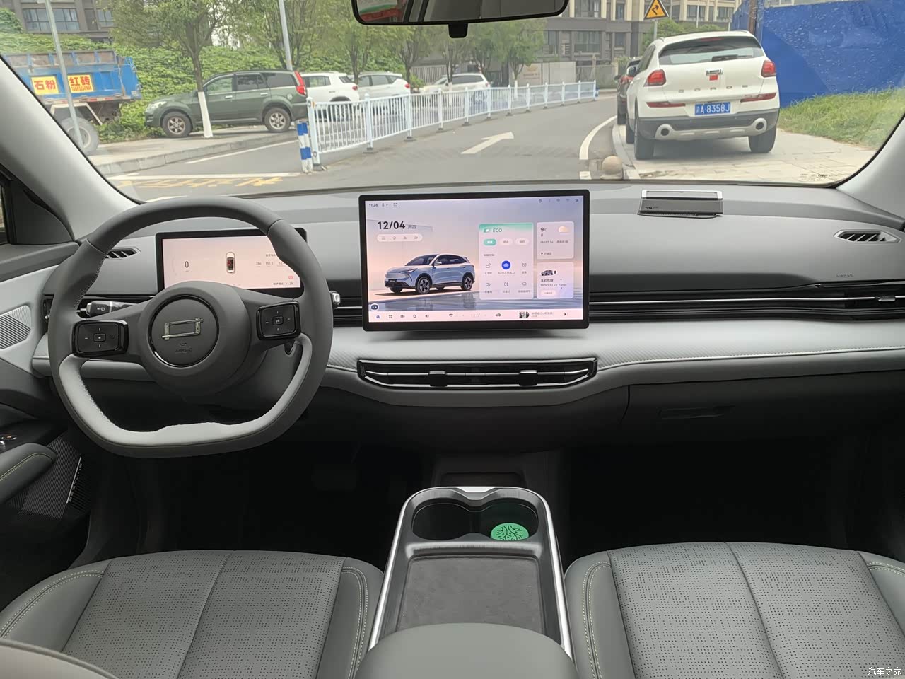 驾驶感受就是轻松、顺滑。电门一踩,动力来得直接又平顺,城里开超车并线很有信心,红绿灯起步总能快人一步,方向盘转向力度轻盈。车子有经济、舒适、运动几种模式,我平时都用舒适模式,动力和能耗比较平衡。底盘调校是明显的家用舒适取向,对路面细碎颠簸过滤得还行,但过大的减速带或坑洼时,后悬架会感觉有点生硬,弹跳感明显些。