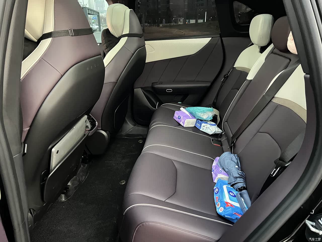 比起我原来的cx-5,ez60整体大一圈,轴距也大了200mm,悟空身高177cm坐在后排完全可以躺下来,更别说翘二郎腿,且后排座椅有点向后凹陷,所以给了头部足够的空间。加上中间是全平地板,坐我这样的三个成年人,一点不拥挤。