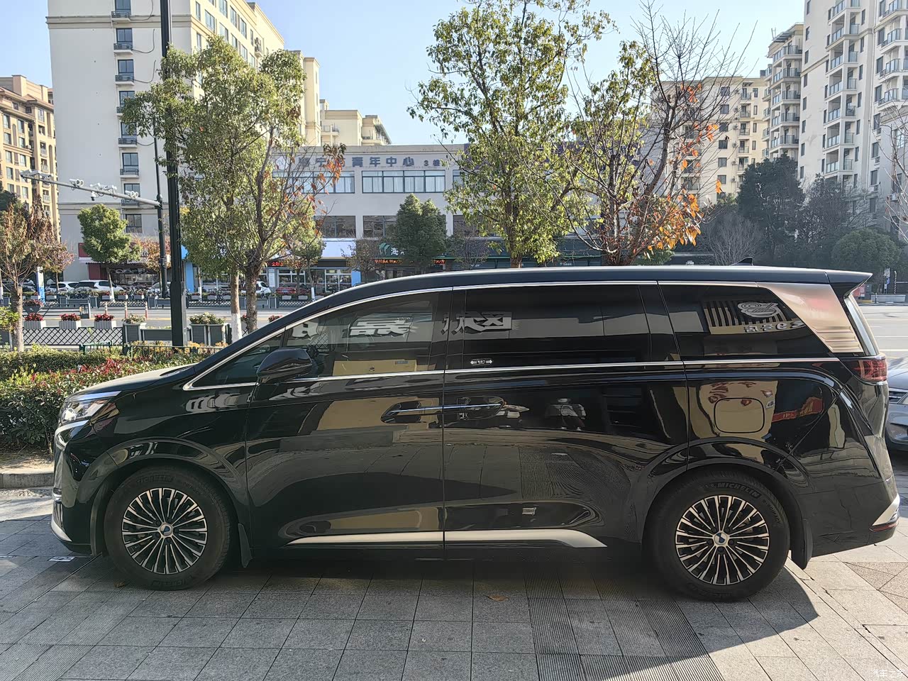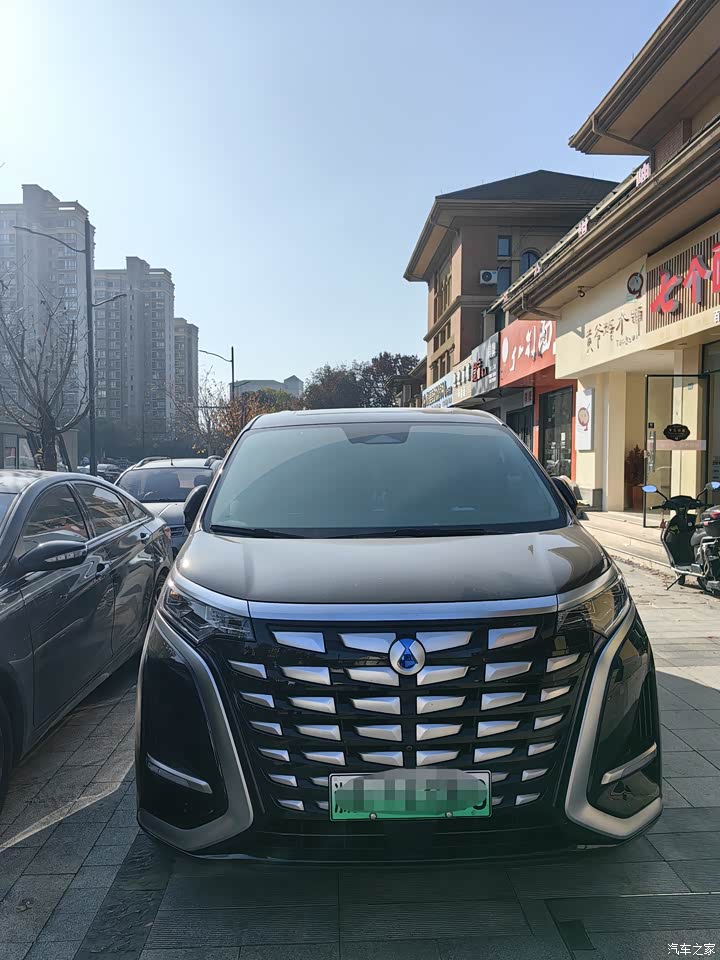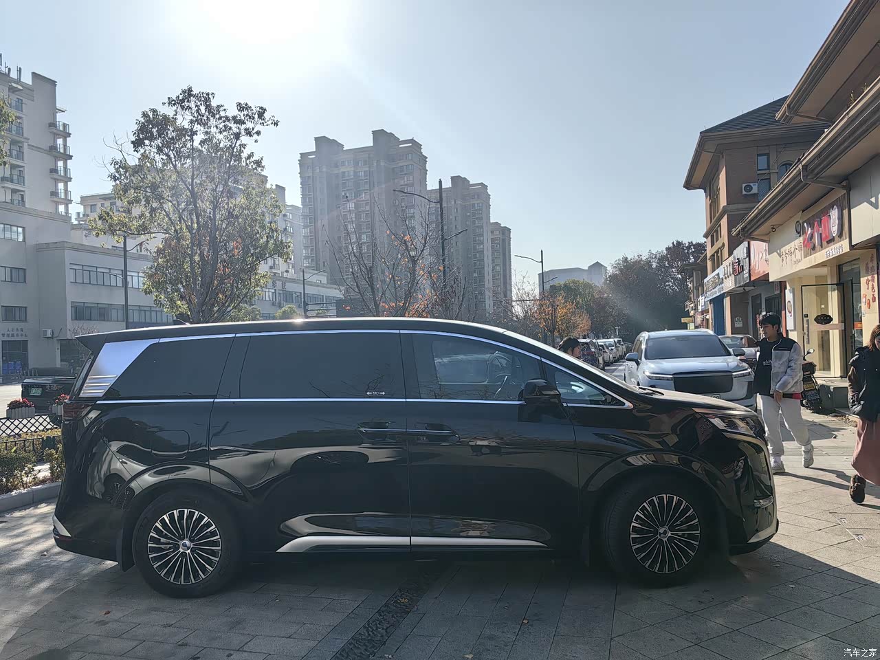 外观应该说是气场与精致并存 豪华气场足:外观纯黑车身搭配“钻石切割”格栅,高亮黑与哑光电镀工艺交错,气场完全不输于百万级MPV。π型前脸配金属镀铬(尤其是霸气的日间行车灯条)和贯穿式“时空穿梭星羽”尾灯,在夜间的辨识度极高。 细节见匠心:侧窗镀铬饰条、隐藏式排气、L形格栅饰条(2025款升级),兼顾家用温馨与商务庄重。三年使用下来,漆面依旧光亮,钣金接缝均匀,工艺经得起时间考验。