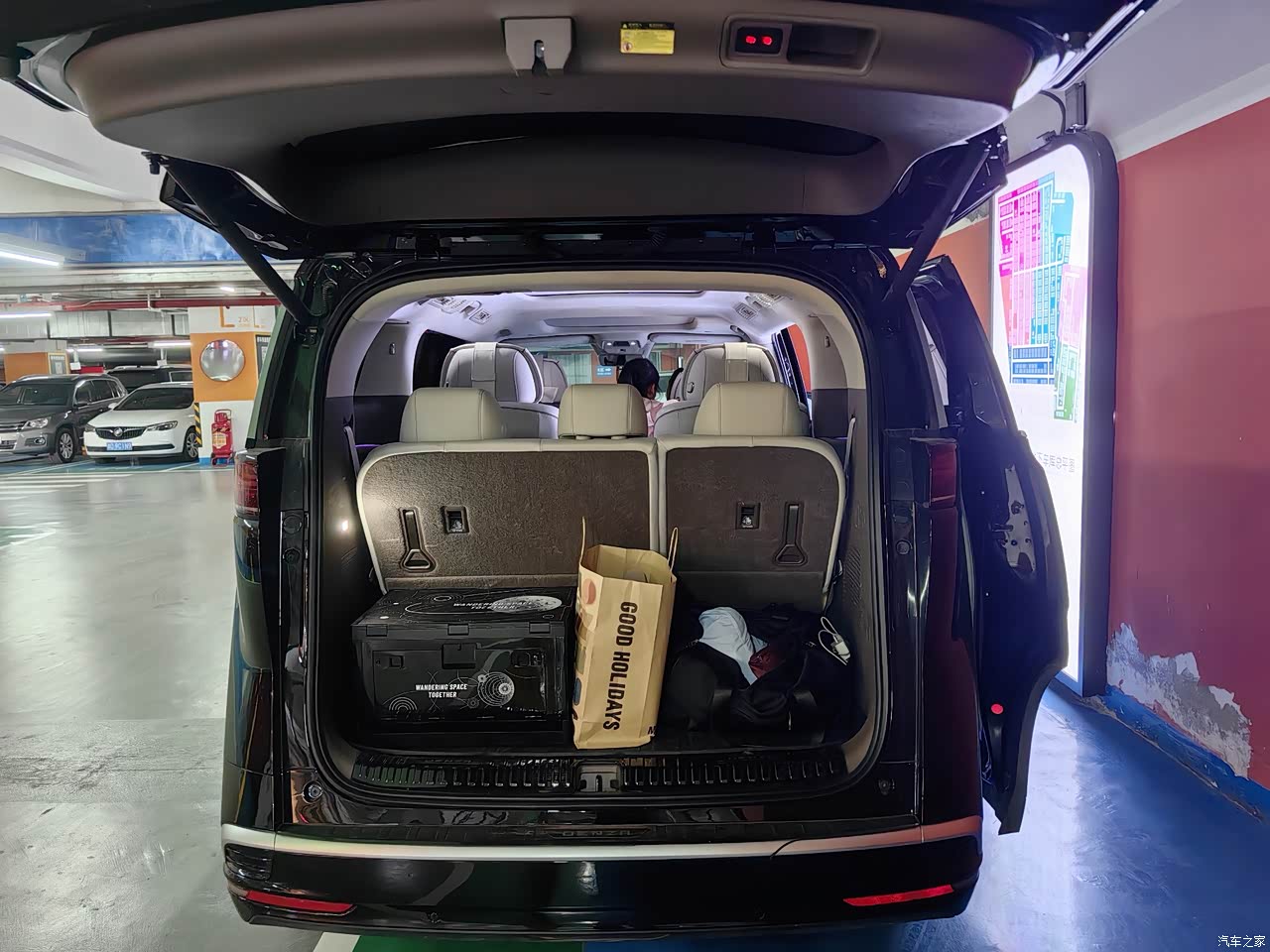 空间够大,每一排都是VIP 灵活魔术师超能装:3110mm超长轴距+三排可前后滑轨(中排1080mm/三排200mm),三排放倒,放上官方赠送的气垫床,妥妥的大床房!我们喜欢自驾游,三年下来,跑了青甘线、海南、东北、川西…一家四口,再加父母,满员出行,后备箱仍可放所有行李,竖放4个24寸行李箱,长途出游超级能装。 航空级体验: 中排双独立座椅:Nappa真皮+零压海绵,支持16点按摩、通风/加热都有,152度躺倒配合腿托,长途变“头等舱”。 第三排也很舒服:父母坐在第三排膝部余两拳,相当于驾车的二排,头枕提升颈部支撑,我们小女儿也特别喜欢第三排,成为她的独立专属空间。