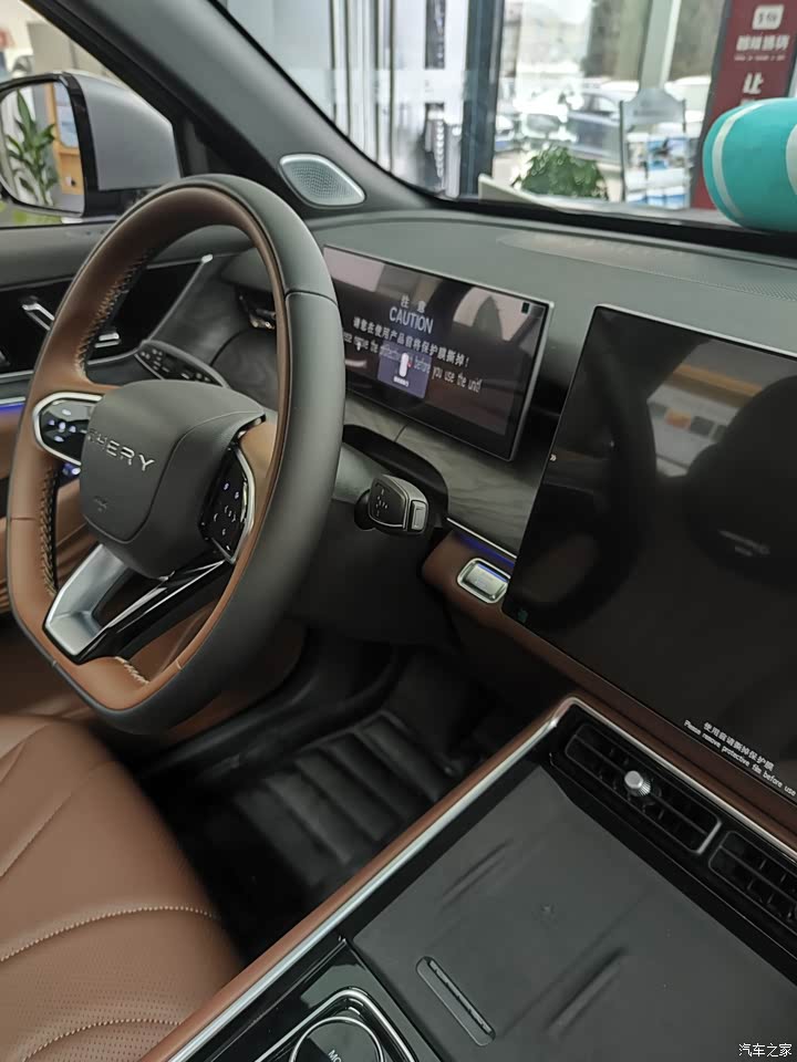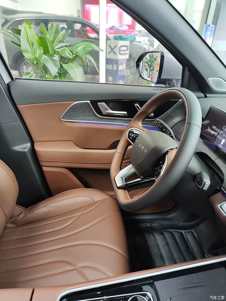 同时瑞虎9x内饰做工用料也很实在,能摸到的地方呢,大多都是。软质的材料包裹,没有一点廉价性,搭配着仿木纹的装饰板,看起来还是特别有档次的,同时呢,这块大屏幕呢,也很显眼,屏幕的显示呢,也很清晰,同时呢,它的前排座椅还有加热通风按摩这些功能