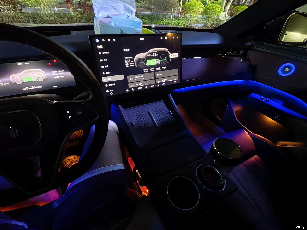 内饰内饰豪华感营造比较好,软包材料摸着手感很舒服,不像有些车硬邦邦的,车内没啥异味。座椅坐着像沙发一样软乎乎的,包裹性很好。车内氛围灯很好看,很有高级感。