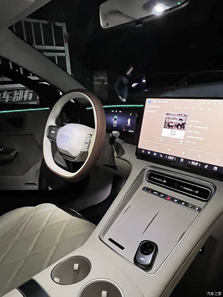 米白色内饰,很清新,屏幕很大,适合在车上爱唱歌看字幕的人,有360环绕,而且在驾车时还能够看到,周围的车和人的距离,主副驾座椅有座椅加热通风的功能,主驾驶还有按摩功能