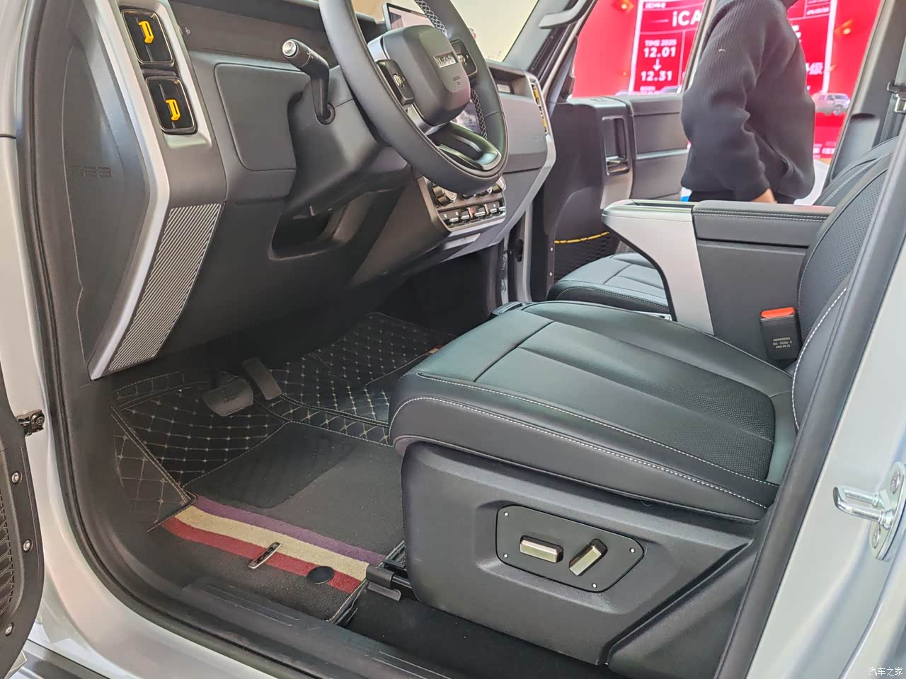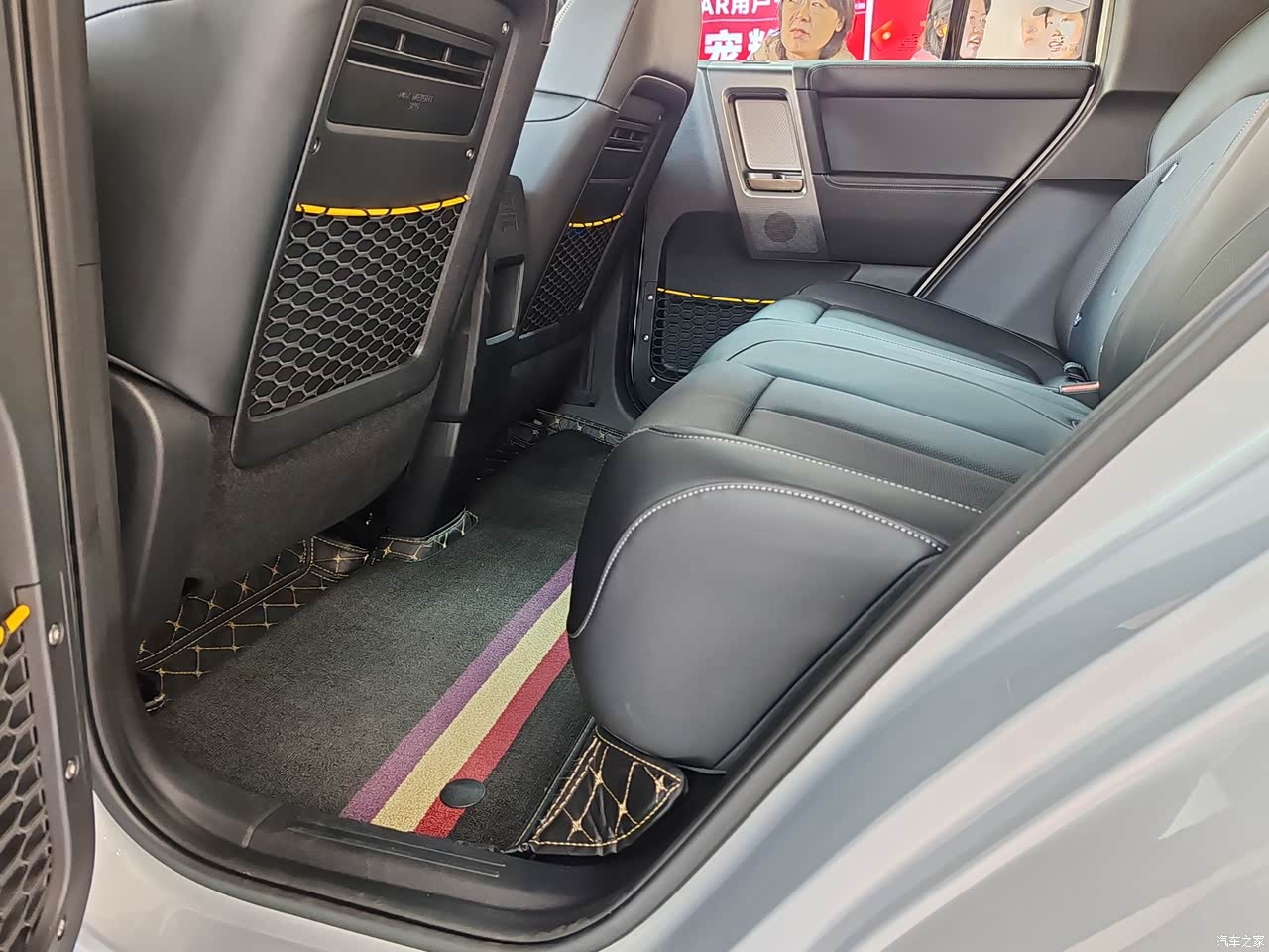 内饰整体还可以,中央扶手的大屏很不错,黑色的内饰整体比较协调,车内的空调 出风口带有黄色的点缀,内饰比较年轻化,车子很多地方带有越野车的标识,比如侧门的网兜、前座椅后面的储物网兜。很多地方和越野车有相通之处。