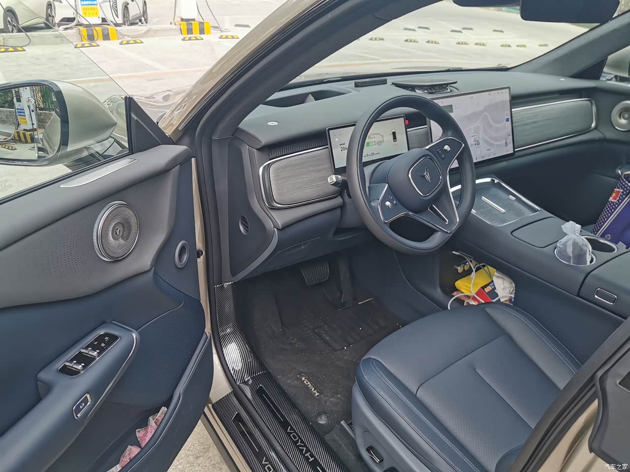 内饰 内饰用的是深海蓝,比常见的黑色更有格调也耐脏,坐进来能摸到的地方很多是软性材质包裹,中控台和门板有仿麂皮,手感不错,新车味道不重,前排云感零压座椅填充厚实,包裹到位,主副驾有通风加热按摩,家里人喜欢副驾的星眠零重力座椅,一键放倒到很舒展的角度,腿托撑住,上车容易入睡,中控十五点六寸屏很显眼,鸿蒙系统运行顺滑,有个细节我留意到了,副驾躺平后现在语音不能直接把座椅恢复到坐姿,需要手动操作,我希望后面OTA能给到这个能力。