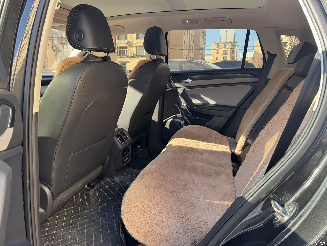 探岳的内饰走的是实用路线,典型的大众家族化“T”字形布局,上手特别容易,我刚提车的时候,不用看说明书就能找到各种功能按键。12英寸的悬浮中控屏和10.25英寸的全液晶仪表盘搭配起来,科技感还不错,仪表盘能显示导航信息,开车时看路线很方便。部分区域用了软性皮质包裹,比如中控台上方和车门扶手处,摸起来手感还行,不过中控下方和副驾前方用的是硬塑料,质感差了点意思。皮质方向盘粗细适中,握感很舒服,多功能按键操作便捷,开车时切歌、调音量不用低头。全景天窗采光很好,晴天打开遮阳帘,车内亮堂堂的,孩子特别喜欢趴在上面看风景,而且用了这么久,也没出现过漏水的情况。