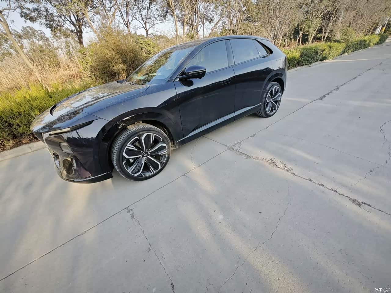 提车这小半个月,我感觉它既延续了马自达标志性的驾控精髓,又精准契合新能源家用车的核心需求,综合表现十分均衡。下面我详细说说,这几天都用车心得和优缺点,第一次发帖大家轻喷。 驾控质感应该是这台车最戳人的亮点,完美传承了 “人马一体” 的驾驶感受。转向精准无虚位,方向盘回馈力度适中,过弯时车身姿态稳健,侧倾控制到位,即便面对连续弯道也能从容应对,丝毫没有大型 SUV 的笨重感;因为我提的是顶配,配有连续可变阻尼悬架,能毫秒级适配路况,日常过减速带或坑洼路面时,震动被过滤得干净柔和,不会有生硬颠簸。我的是21寸轮毂,理论上19寸应该会更舒适。高速行驶时车身稳定性极强,变道超车干脆利落,动力输出线性平顺,没有新能源车型常见的暴冲感。我爸是油车老司机,换到这辆电车上,不需要任何适应时间,立马就能上手习惯。