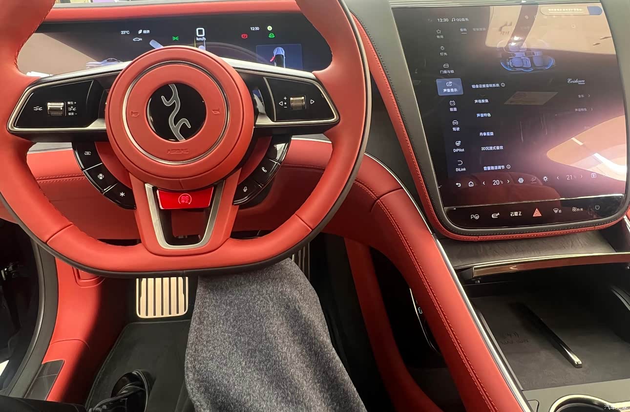 四电机动力挺足,市区用舒适档,印象深的是跑西湖遇暴雨路面滑,车子却特别稳,变道的时候一点不晃,后来才知道是易四方技术的原因。过减速带或者坑洼路时,云辇-Z悬架过滤得不错,坐在车里没什么明显颠簸。现在没上牌,主要在市区和周边转,暂时没跑太远。