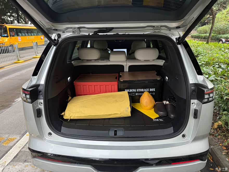 【空间表现与静谧性】最让我满意的是它的超大空间,我身高189cm,正常驾驶位头部也有2个拳头的距离,后排空间更是大的夸张,带上我们球队的两个190cm的大中锋空间也是绰绰有余,平时也有床车自驾的场景,把后排放倒,前排放到最前面也能形成1.2×2米的大床房,还是非常不错的,再来说说静谧性,前后车窗的双层夹胶玻璃+米其林静音胎,纯电模式隔音还是很棒的,在增程器启动以后,噪音也能控制在能接受的程度,因此空间方面我能给到5分