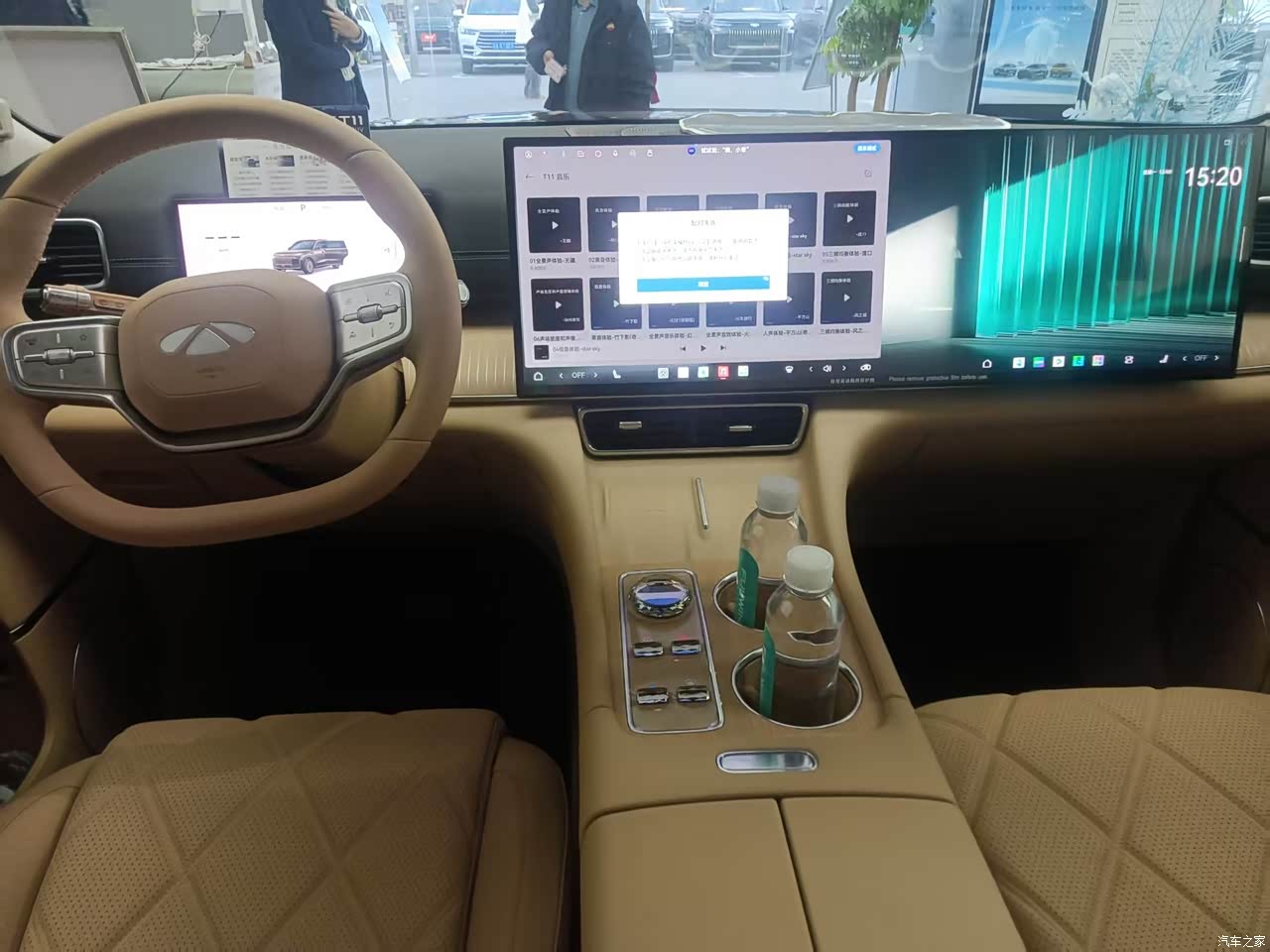 打开车门就能看到车内米白色真皮座椅瞬间营造 轻奢氛围 ,缝线工艺精湛,触感细腻如高端家居。内饰材质选用环保皮革与软质包裹,搭配 水晶质感物理按钮 ,在极简中流露精致。智能化是核心亮点:前排三联巨屏(超15英寸)支持分屏互动,副驾可独立观影;头顶内置娱乐屏,配合环绕式出风口(降温效率提升30%),打造沉浸式“家庭影院”。语音控制覆盖座椅、空调等二/三排功能,但取消传统手套箱按键(改为屏幕操作),展现了 激进科技取向 ——这虽需适应,却契合年轻家庭对“无按键未来”的追求。