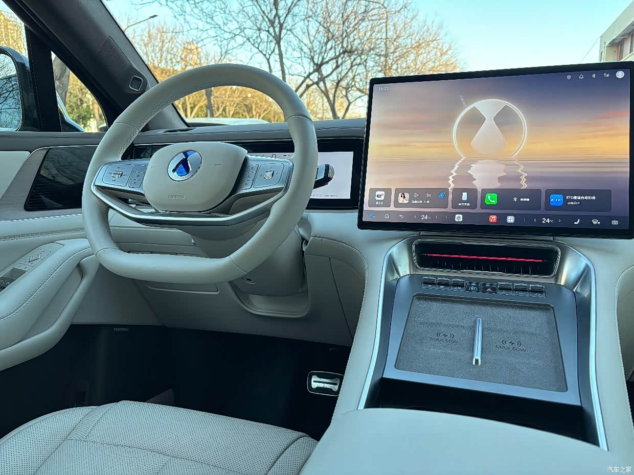 内饰我觉得挺好看的米色的内饰确实是简洁好看百看不厌的感觉,而且车子的用料很扎实新车没啥异味而且缝线都很紧凑,软包的地方拐角我都看了下也是严丝合缝的。空调效果还可以零下几度的情况下打开暖风25度基本上两三分钟车子就暖和了,如果吹玻璃雾气打开到最大半分钟不到车子前挡风玻璃就没有雾了。后排的娱乐屏幕还可以首先就是清晰度很高,但是懒得搭理,容易积灰。