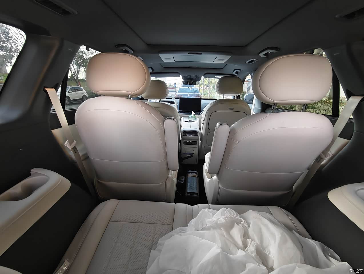 空间是我下单的关键,这车车长过5米,轴距3米多,数据看着大,用起来也真大,我一米八二,第三排坐进去能把腿伸到一个舒服的位置,膝盖不顶前排,短途一两小时没问题,家里安排是爸妈坐第二排两个独立座椅,孩子和阿姨在第三排,第二排中间留了过道,去第三排不需要翻折座椅,六座都起用的时候后备厢还能竖着放两个24寸箱子外加几个背包,周末出门装备不用减配,车机里有个一键空间平均分配,点一下前后排座椅自己挪,腿部空间能均衡一点,家里老小身高不一样,也能各自找到合适的位置。