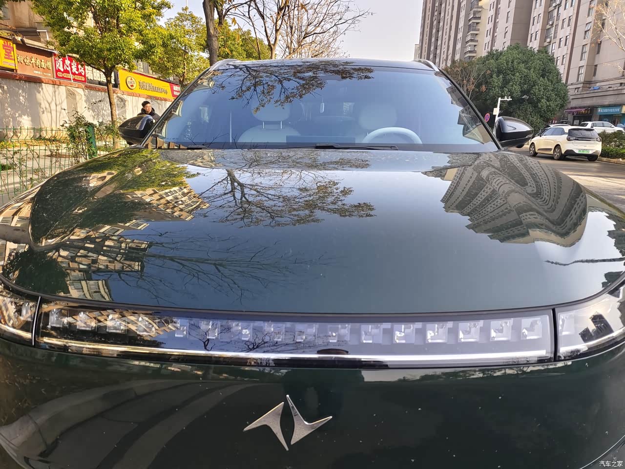 外观这块仙踪绿实车看起来带点灰调的深绿,阳光底下漆面有细小颗粒那种微微的反光,整体很干净,有懂喷涂的朋友看了说新工艺硬度更高更耐划,车头是贯穿灯带,夜里一亮辨识度挺好,车身侧面线条拉得很长,配上21寸轮圈,路上存在感很明确,在老小区里掉头找车位要多留点余量,窄路会车慢一点,新手开两天适应一下车宽车长就更有把握。
