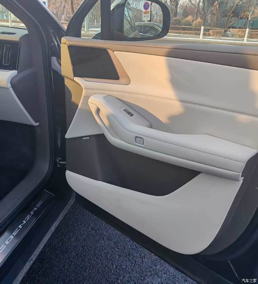 内饰选了米色,家里有孩子也不怕弄脏,它的材质很好打理。座椅是皮质的,摸起来软,坐久了也不觉得累,副驾驶的零重力座椅很舒服,有时候老婆坐副驾,打开按摩功能,一路上都能休息,中控台没有明显的缝隙,按键和旋钮的手感不错,操作起来很顺手。