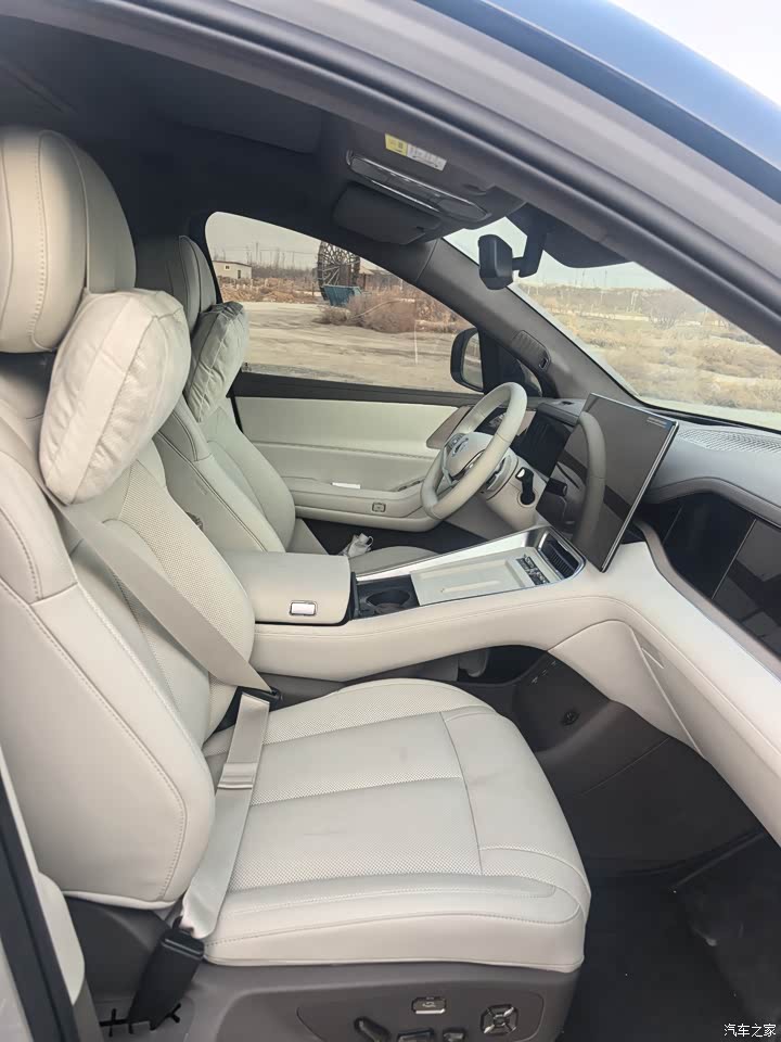 我选择的云锦米内饰质感惊艳,温馨而豪华,软质包覆搭配透光真木饰板,触手可及之处均是细腻材质。中控台采用横向贯穿式设计,13.2英寸液晶仪表+17.3英寸中控屏+13.2英寸副驾娱乐屏的三屏组合,科技感十足且操作流畅。座椅触感柔软贴合人体,前排支持加热、通风、按摩功能,长途驾驶能可有效缓解疲劳,使用感极佳。车内自带香氛系统,搭配四温区双层流空调,即使是新车也没有异味,给家人带来了健康的乘坐环境。