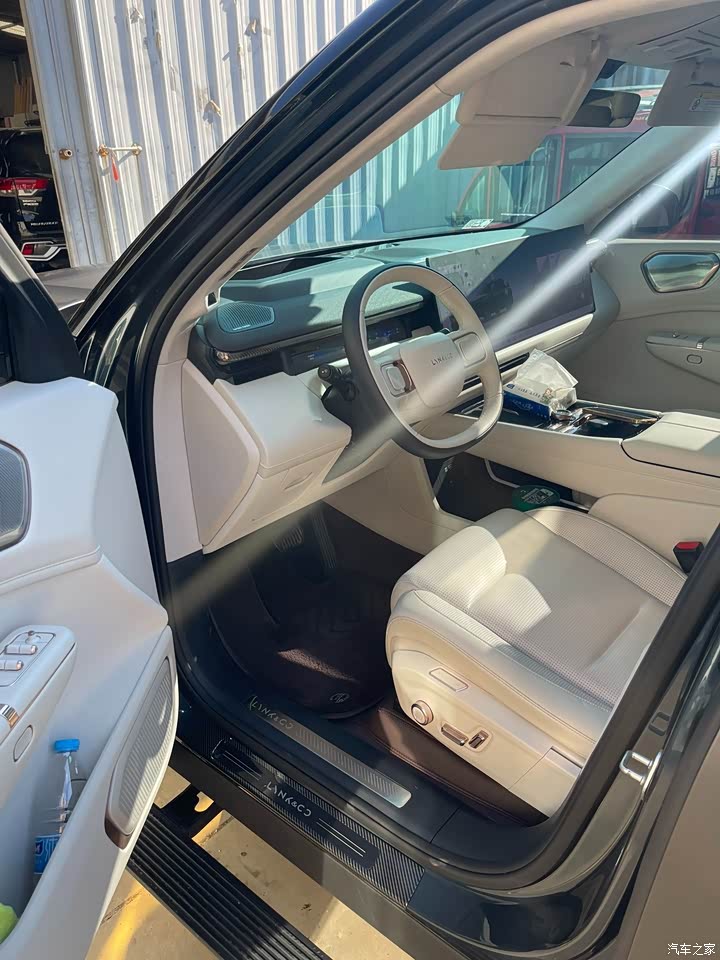 内饰选择的日光米,又干净又有档次,唯一不好就是太容易脏了(带娃家庭懂的都懂),新车味不算重,放俩炭包一周就散了。中控下储物格能塞钥匙包,还能给娃的温奶器充电,后排电视是带娃神器,上车娃就不吵了,长途看个电影太爽了。