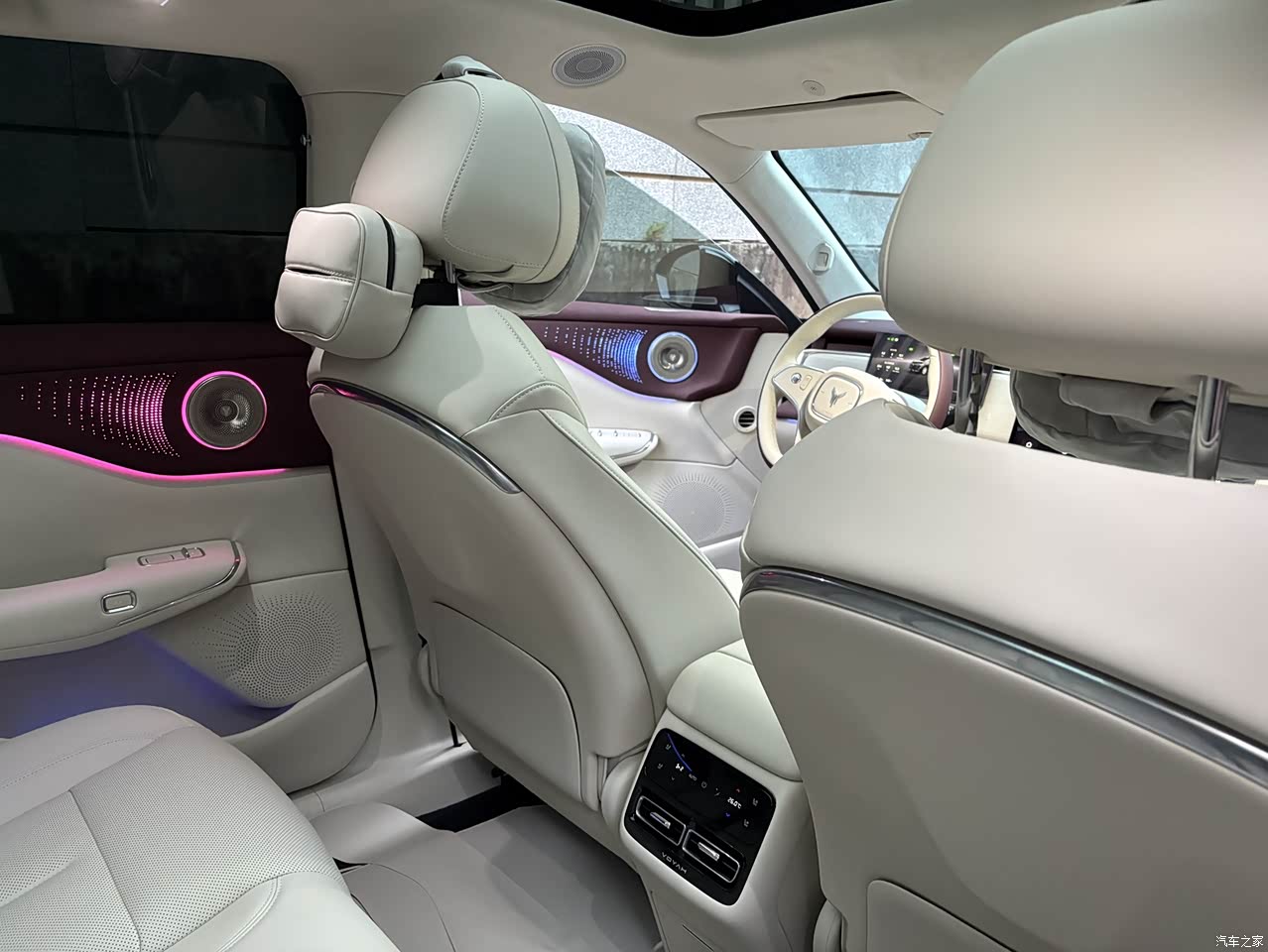 中控台以及车门板多数部位均采用了触感柔软的仿麂皮材质进行包裹,摸起来的质感着实不错,而且还以红色缝线作为点缀,如此一来,豪华感便得以充分彰显。与车内的氛围灯相互配合,在夜晚开车之时,那种氛围简直棒极了,以至于一坐进车内便不想再出来了。在配置方面,更是诚意十足,冷暖冰箱、零压座椅、座椅通风加热以及按摩功能全都具备,不论是主驾驶位置还是副驾驶位置,长时间乘坐都会感到十分舒适。香氛系统还额外赠送了三罐香水,这些香水的味道非常好闻,一上车便能闻到阵阵香气。
