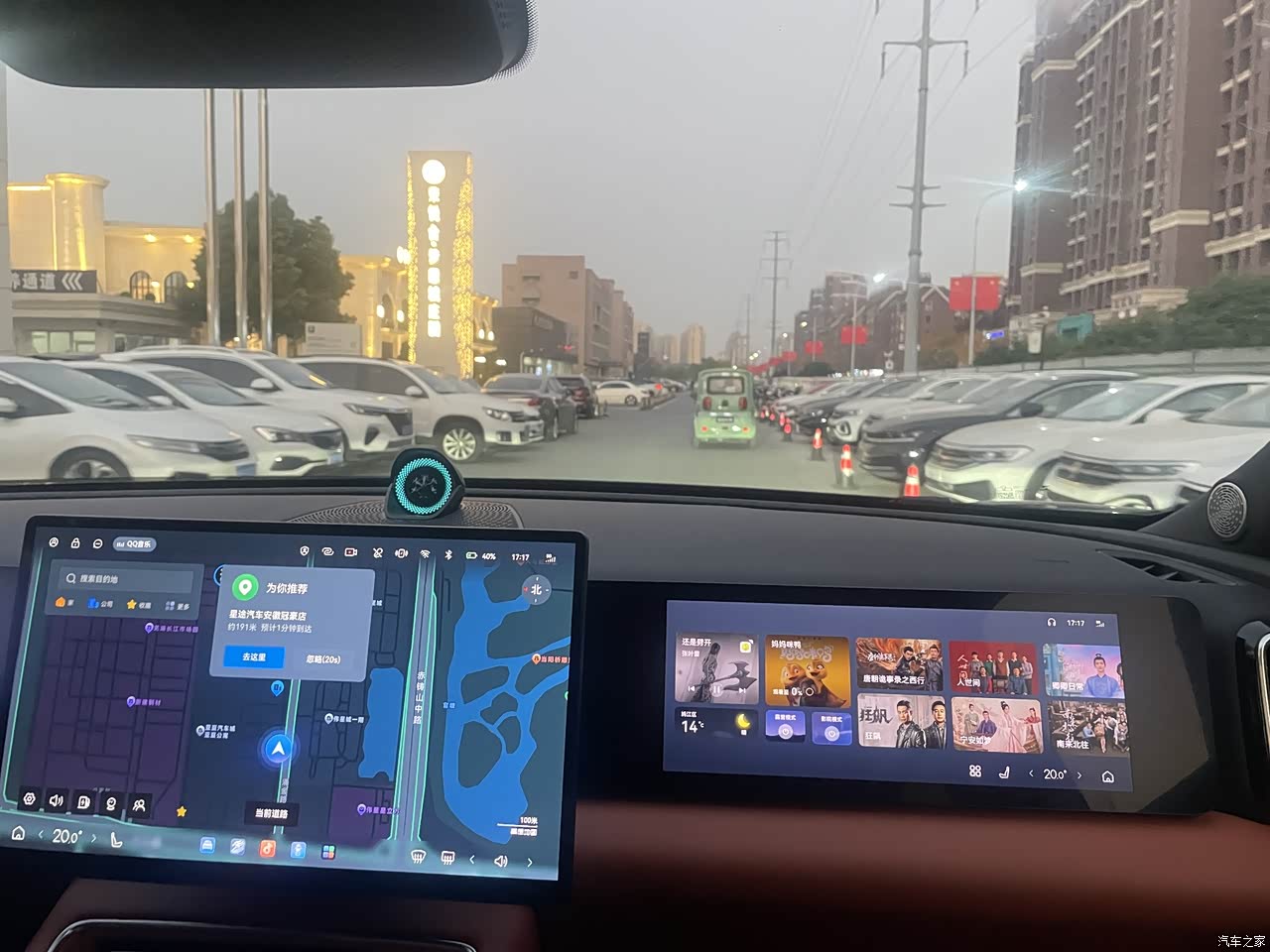 内饰坐在主驾驶来看,仪表盘大小还可以。中规中矩。都能显示各种信息。中控屏很大。导航显示的很清晰,一眼就能看清楚每个路线。路段。道路信息和周围车辆显示。扶手台那里还保留了实体按键,这点绝对好评。有时候按键比语音来的感觉更好。让人更有感觉。整个内饰美中不足的是副驾驶娱乐屏。实在太窄太长了。看电视的画面都无法展示更好的观感