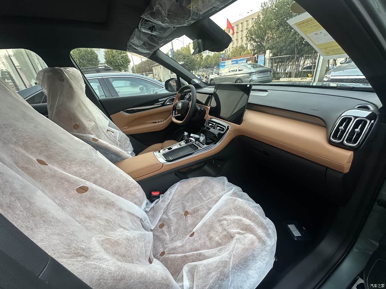 整体布局:采用 “星舰环抱式” 座舱布局。中控台呈展开的山水卷轴造型,搭配木纹饰条,营造出优雅的氛围。高配车型配备 27 英寸 4K 曲面屏,采用无边框悬浮设计,与仪表台形成 15° 倾斜的黄金夹角,驾驶时视线偏移量减少 30%。中低配车型则搭载 15.4 英寸 2.5K 大屏(低配为 14.6 英寸),显示清晰,操作流畅。内饰材质:内饰用料扎实,仪表台上方覆盖搪塑软质材料,门板扶手处为皮质包裹,缝线工艺达到 2.5mm 针距精度,质感十足。部分高配车型座椅采用德国 Bader 半苯胺真皮与 Alcantara 翻毛皮混搭,填充密度达到 55kg/m³,兼顾支撑性与包裹感。细节设计:副驾面前采用 “水岸涟漪” 纹理设计,搭配晶钻挡把,在灯光下极具美感。座舱配备 256 色氛围灯,支持音乐律动、呼吸渐变等 8 种交互模式,能营造出不同的驾乘氛围。智能配置:搭载 7nm 龍鹰一号芯片,算力强大,运行流畅。车机系统支持四音区独立交互,后排乘客也能轻松控制车内设备。此外,车内还配备了 50W 带风扇的无线快充、AR - HUD 抬头显示等配置,实用性与科技