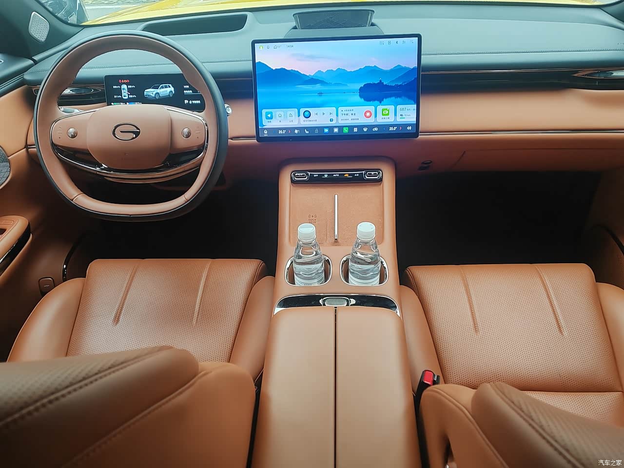 坐进传祺向往 S7豪华感和科技感扑面而来。内饰整体布局简洁大方,细节处又尽显精致,用的材料很讲究,摸起来软软的,看着就有档次。一上车,最先吸引我眼球的就是三屏联动设计,悬浮式中控屏,尺寸够大,操作流畅,车机系统反应很快。