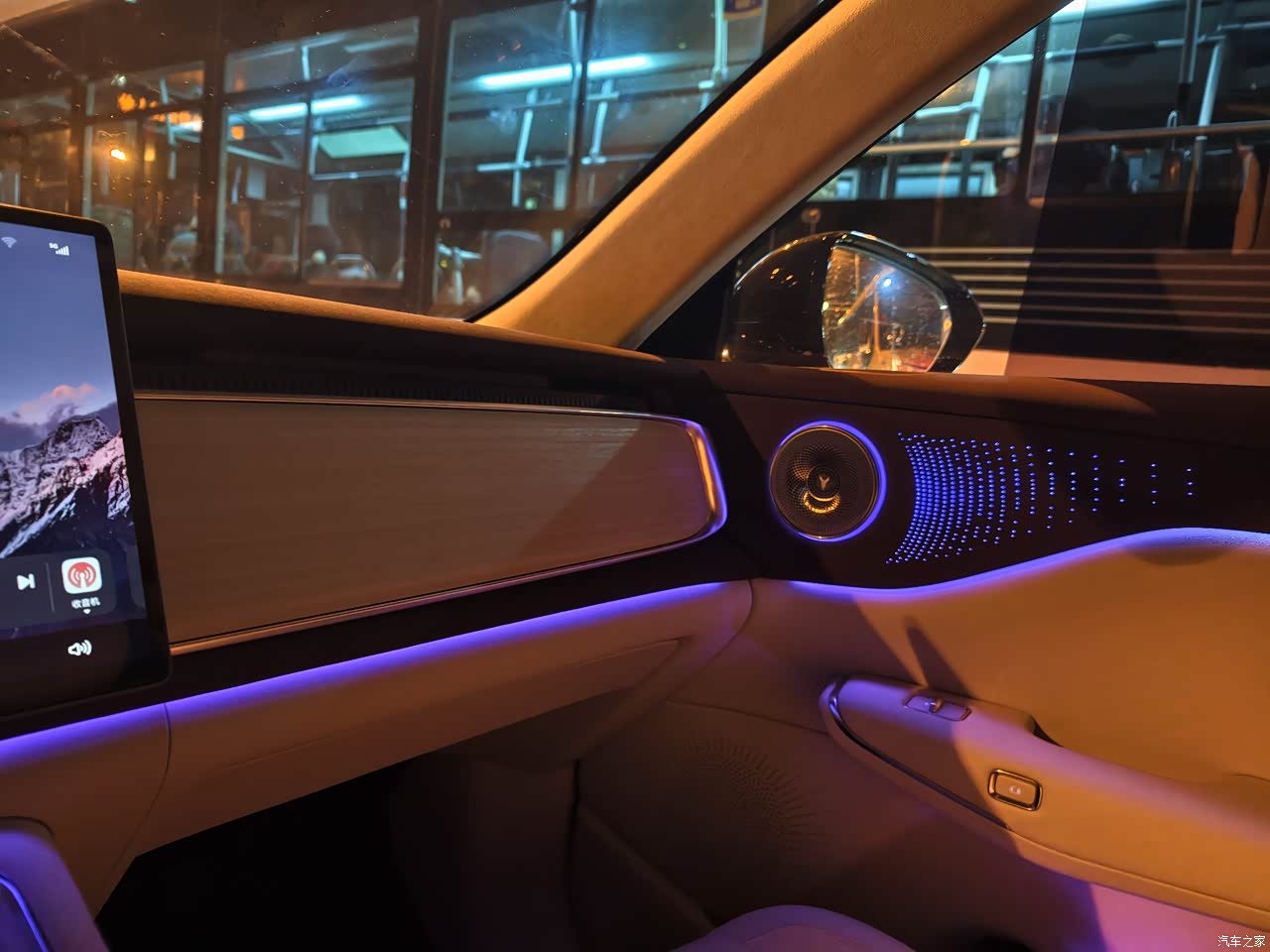 车内氛围灯也很好看,有很多的设置模式,中款台上的音响搭配氛围灯豪华感十足。