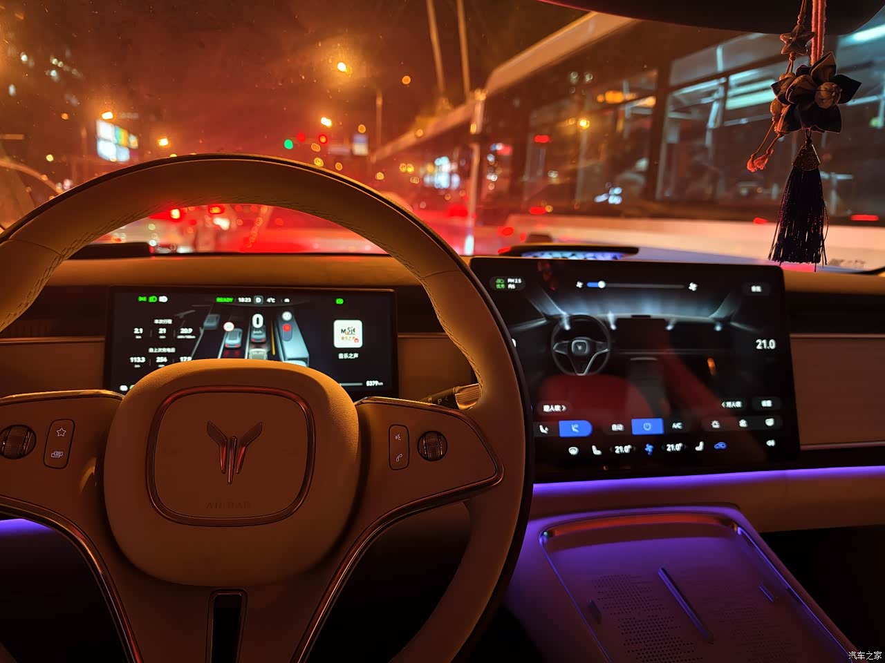 从年初开始陆续看带辅助驾驶的车,之前的广汽埃安没有一点辅助,有时候开车实在比较累,综合考虑之后现在换车损失还不算太多,综合目前情况个人认为纯电辅助驾驶比较好的是华为系和小鹏,期间看过阿维塔07、小鹏G6、G7,智界R7超出预算,期间犹豫不断,直到看到新知音上市,是华为系最便宜的车型了(尚界除外,看车时还没上市)。这几个月用下来发现整体确实不错,智驾能力很强,很多情况都可以应对。当初也是坐进车内被内饰征服了,有一种豪华感,内饰的双配色也很亮眼。