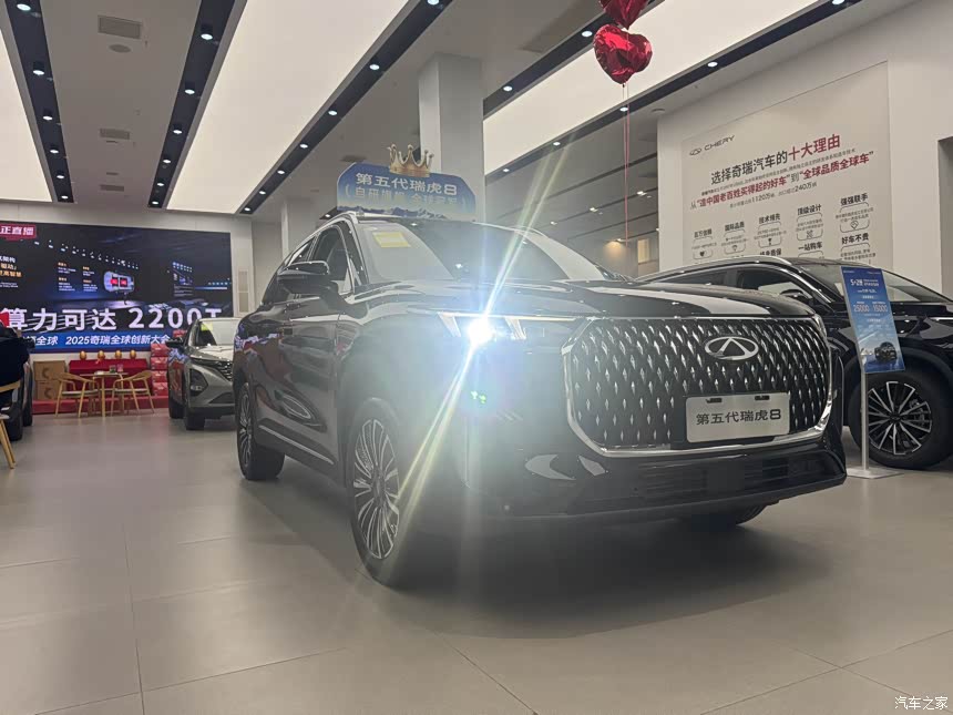 第五代瑞虎8全系标配高通骁龙8155芯片,中控屏采用15.6英寸2.5K横屏,搭载AI语音助手,支持四音区语音识别和“可见即可说”功能,并兼容全品牌手机互联。 动力组合方面,也比我的老虎8有所提升,功率增加2Kw、增加了20牛米的扭矩,动力同时提升了3马力,数据增加了,还吃92号粗粮,说明奇瑞的发动机一直在进步。 被动安全方面,车身采用80%高强度钢铝混合结构,配备同级少有的8安全气囊系统(含膝部与远端气囊)。 主动安全方面,标配L2级智能驾驶辅助系统,包含全速域自适应巡航、自动紧急制动、540°全景影像(含透明底盘)等功能。