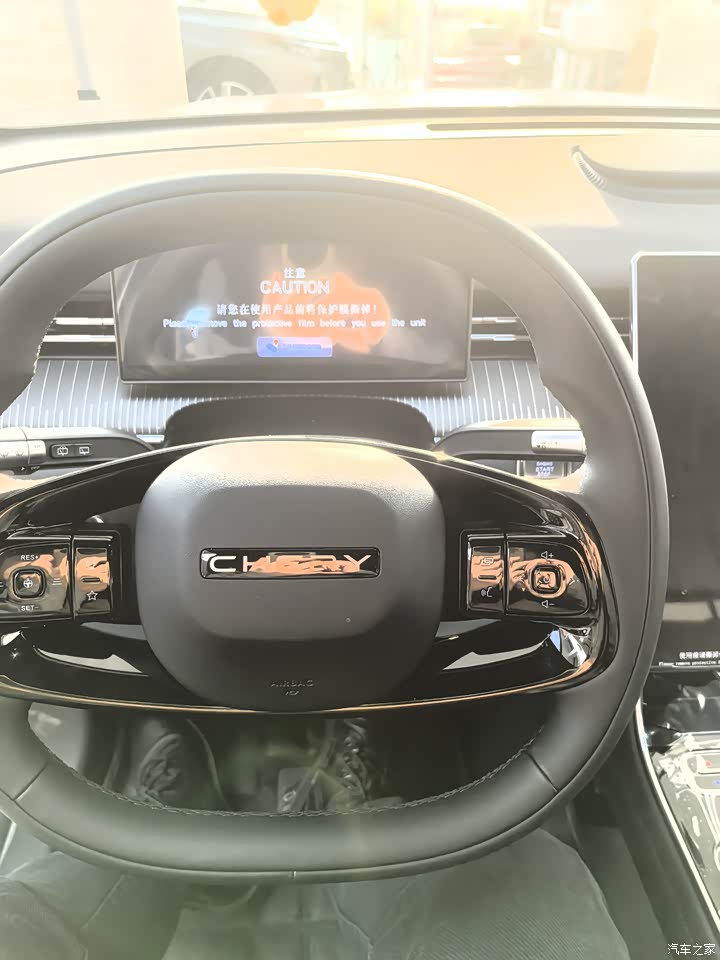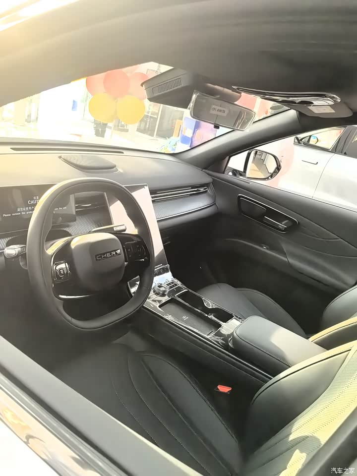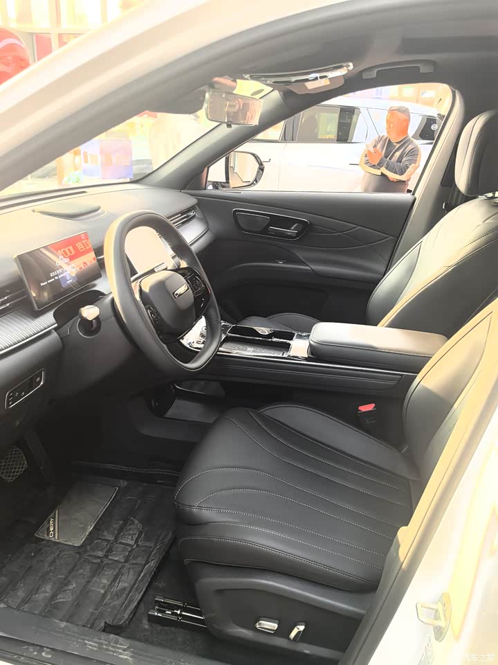 打开车门,黑色内饰看着就很有活力,13.2 英寸的竖屏怼在中控,搭配电子怀挡,科技感直接拉满,用手划了划屏幕,高通 8155芯片果然流畅,一点不卡顿。不过摸了摸门板下沿,还是硬塑料,触感一般,而且空调触控按键有点小,开车时盲操作估计费劲。对比博越L的内饰,人家软包覆盖更多,质感更细腻,瑞虎8豹款在细节用料上还是差点意思。
