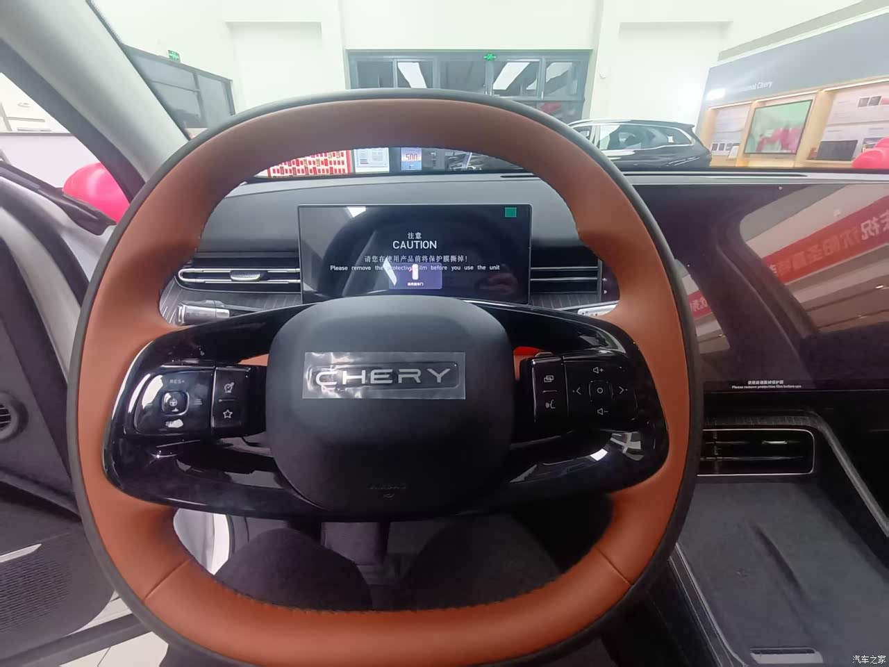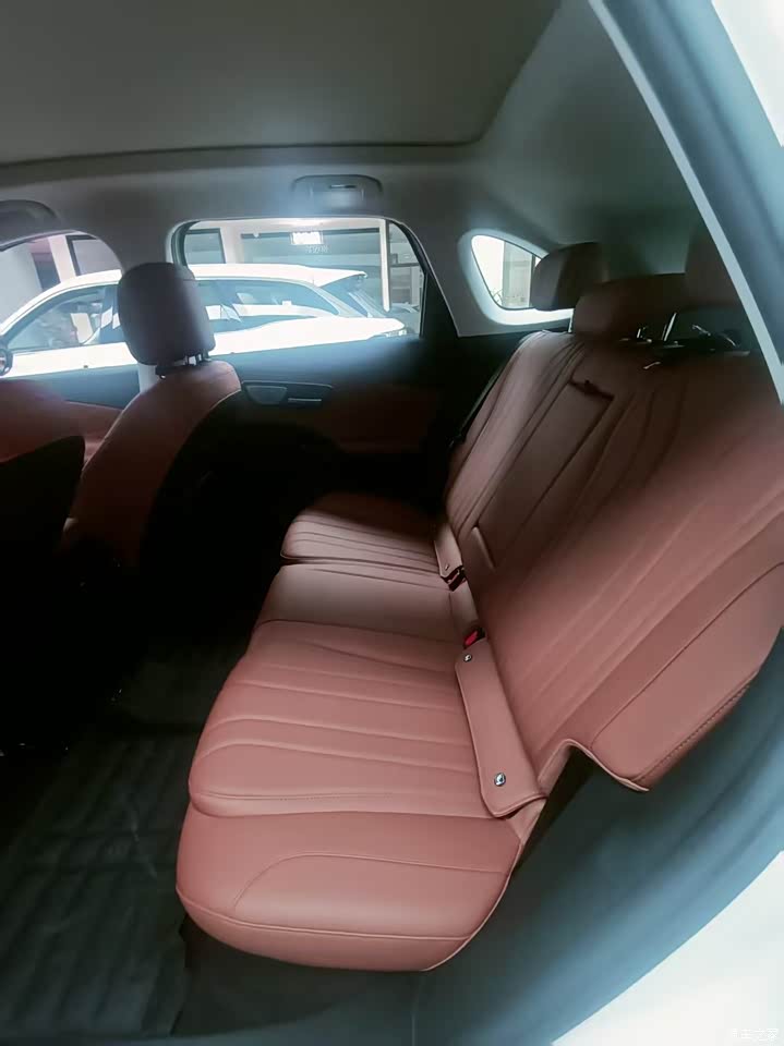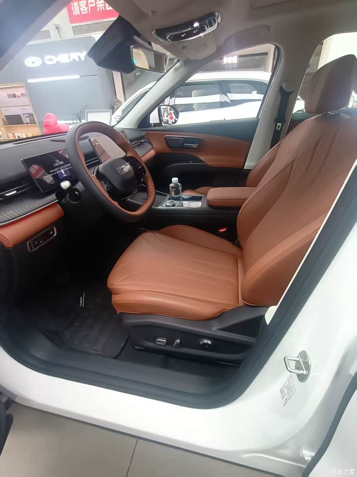 内饰采用了撞色设计,琥珀棕的皮质座椅搭配黑色的中控台,显得温馨又高级。座椅采用了打孔皮质包裹,透气性很好,夏天开座椅通风也不会觉得闷。中控台大部分区域都用了软性材质包裹,用手摸上去很有质感,不像同价位的合资车那样全是硬塑料。全液晶仪表搭配15.6英寸的纵置中控屏,屏幕分辨率很高,显示效果清晰。空调出风口采用了隐藏式设计,与中控台融为一体,显得很简洁。