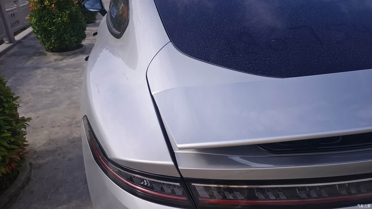 先把让我最舒服的放前面,颜值和空间,把钱砸在这俩上,我觉得值,展厅里第一眼就是被这向阳金勾住的,不是刺眼的那种金,更像傍晚四五点压在云上的那层暖光,带点橙,近看漆面的那种细腻挺到位,车身姿态低,轿跑的溜背,门是无框,停小区楼下,来回的人会多看两眼,有一回有个大哥特意摇窗问这是什么车多少预算,我笑了下说个大概,他点点头开走,电动尾翼在时速过八十的时候自己起,平时不猛开车也挡不住那一瞬的仪式流程,视觉效果到位。说空间这块心里更踏实,溜背看着担心后排压抑,真坐进来不一样,我同事一米八五的个头,后排能把腿轻松搭着,地台纯平,中间那位脚也能随意伸,出门几次他都提,行李厢掀背式一抬开口巨大,上个月周末露营,折叠婴儿车两个二十八寸的箱子,一包帐篷俩折叠椅一堆食材,还塞进几个小箱子,整齐码好以后还有空位,这种把东西都吃下去的痛快感,跟它外形那种精致放一起,反差挺有意思。