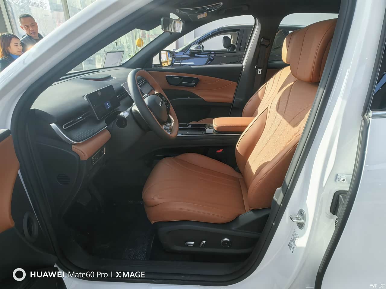 这款车的内饰棕色系也是很不错的,黑色太庄重,白色容易脏,而棕色恰到好处,所见即所得,大面积的软包材质。不再是满满的塑料时代了。很个性的竖置中控大屏,真皮打孔座椅透气舒适。