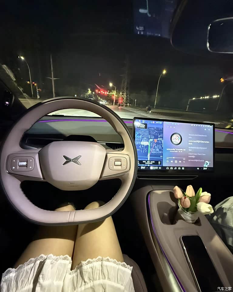 内饰我也选择的是紫色的,我觉得这样和外观搭配起来会更好看。车机用起来不错,座椅也超软,乘坐起来舒服。只不过是新车的时候味道很大,确实车内有很大的异味,散了发了很久。