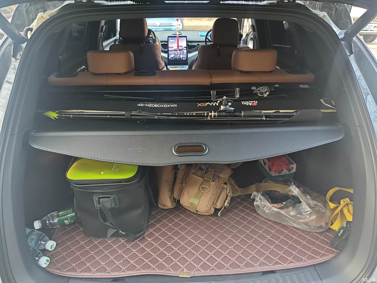 前排空间很够用,我身高180cm,调整好座椅后,头部还有一拳多的距离,腿部空间也很充裕,长时间开车不会觉得局促。后排空间也超出了我的预期,上次带三个钓友一起去钓鱼,后排坐三个人完全不挤,腿部能轻松活动,不会有坐“小板凳”的压抑感。后备箱空间更是我的“钓鱼装备库”,平时里面固定放着鱼竿、钓桶、钓鱼服和备用鞋子,这些东西放进去后还有不少剩余空间,偶尔带点渔具配件或者生活用品也完全没问题。而且后备箱的开口设计得比较低,拿取沉重的钓桶时特别方便,不用费太大劲。