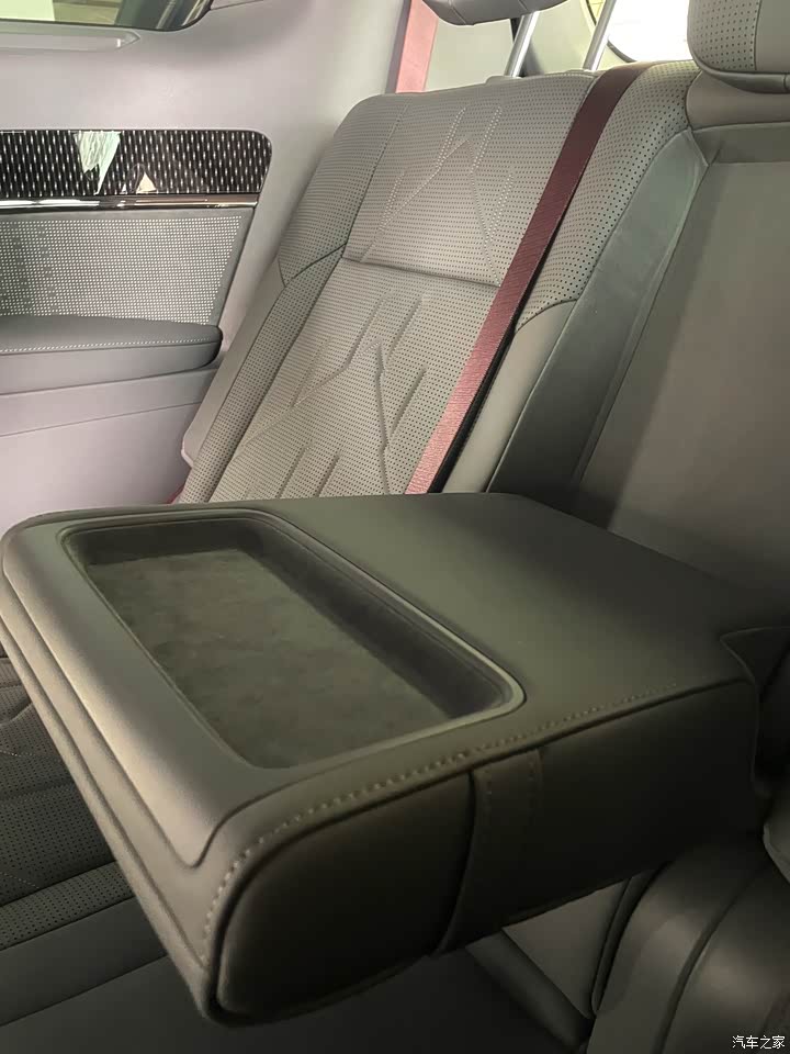 内饰也是充满科技感和豪华感。15.05英寸的中控大屏,17英寸后排大屏幕,车内有2个摄像头,坐在前排不用回头,可以通过中控屏幕以及后排摄像头查看后排乘客情况,更加安全。 内饰用料扎实,车顶是皮绒,座椅是真皮,手感顶级。 车顶是分段式不可开启的天窗,打开遮阳帘之后,车内更加敞亮。 伊姆斯座椅豪华,调节按钮就在座椅内侧,调节很方便,支持多向调节,包裹性和舒适性来说,有点类似高铁的商务舱座椅。外出旅游可以在舒适的座椅上休息,打开车载KTV,还能高歌一曲。