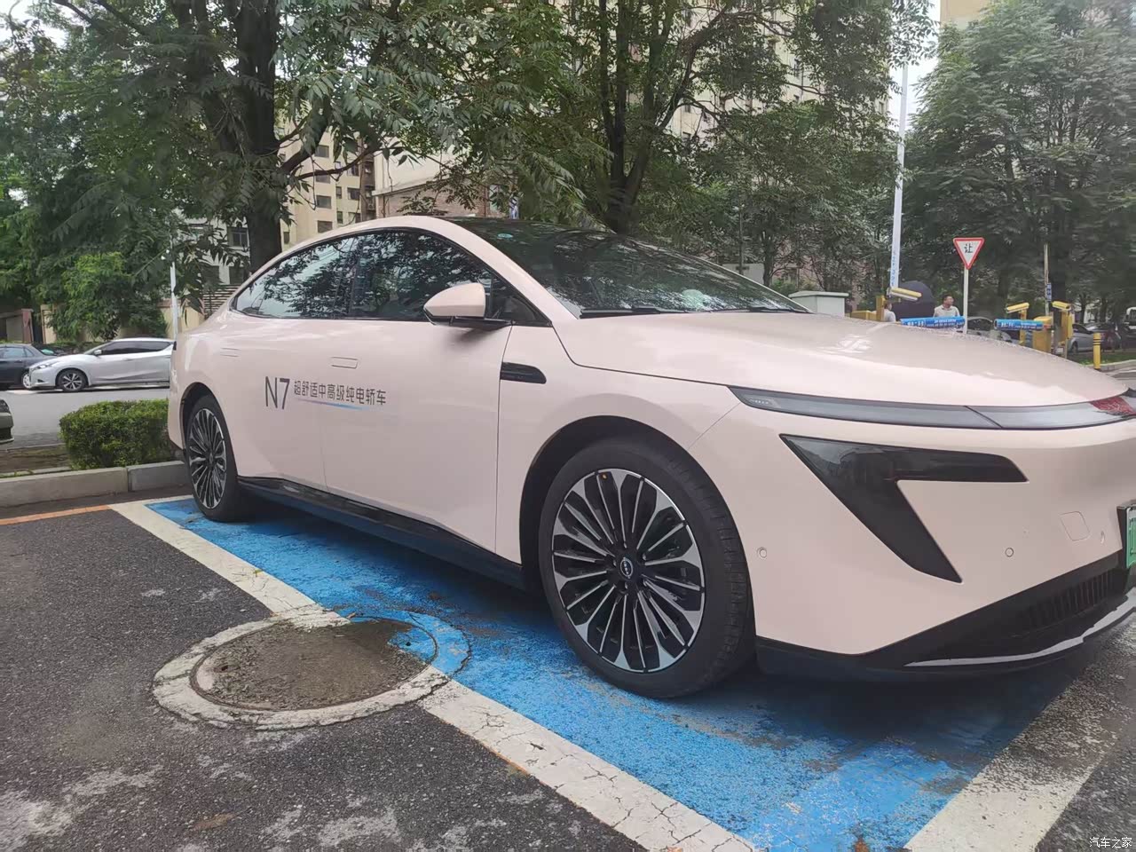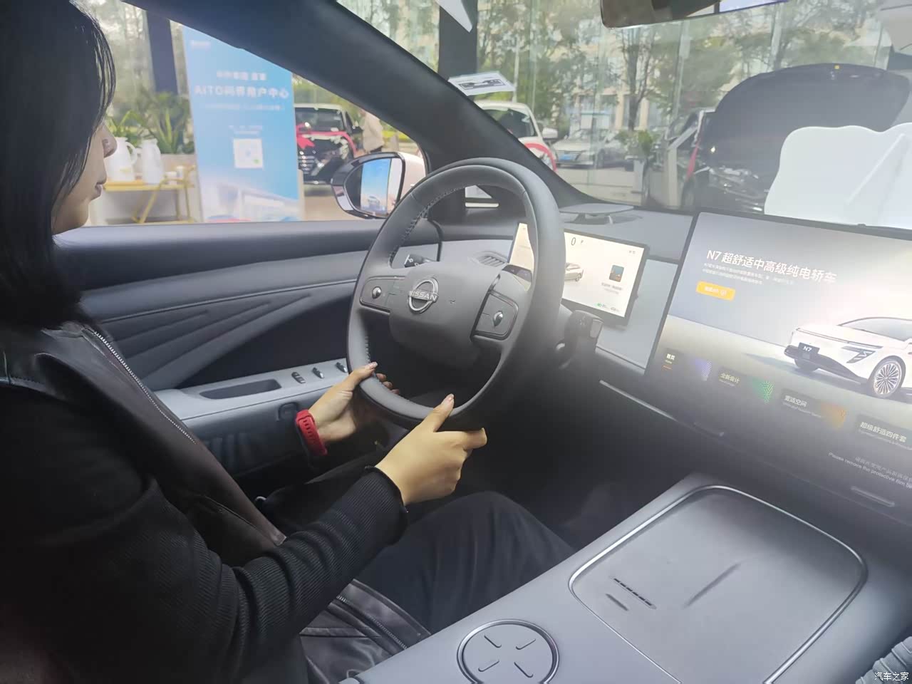 日产N7的驾驶感受还行,虽说日产车悬挂都偏软,但是过减速带或者坑洼路面时,颠簸感过滤得很好,坐着很舒服。动力输出挺快,毕竟是电车,日常通勤超车完全够用,配上红色刹车卡钳还是很显运动的。