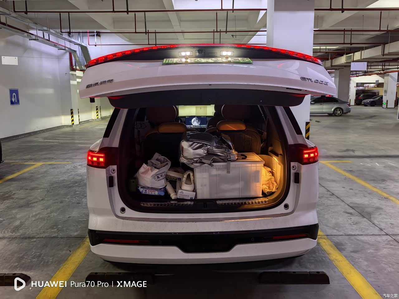 空间是它的主打,六座都坐人的时候后备箱还能竖着放两个二十四寸的行李箱再塞点杂物,四个人出行把第三排一键电动放倒,地台接近全平,宝宝推车露营装备一个个进,门板储物槽、中控下方镂空、扶手箱容量都不小,家用场景下这些细节比参数更有用。