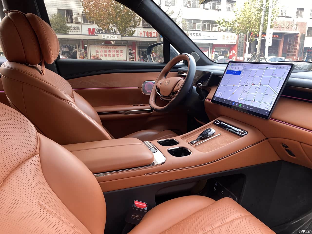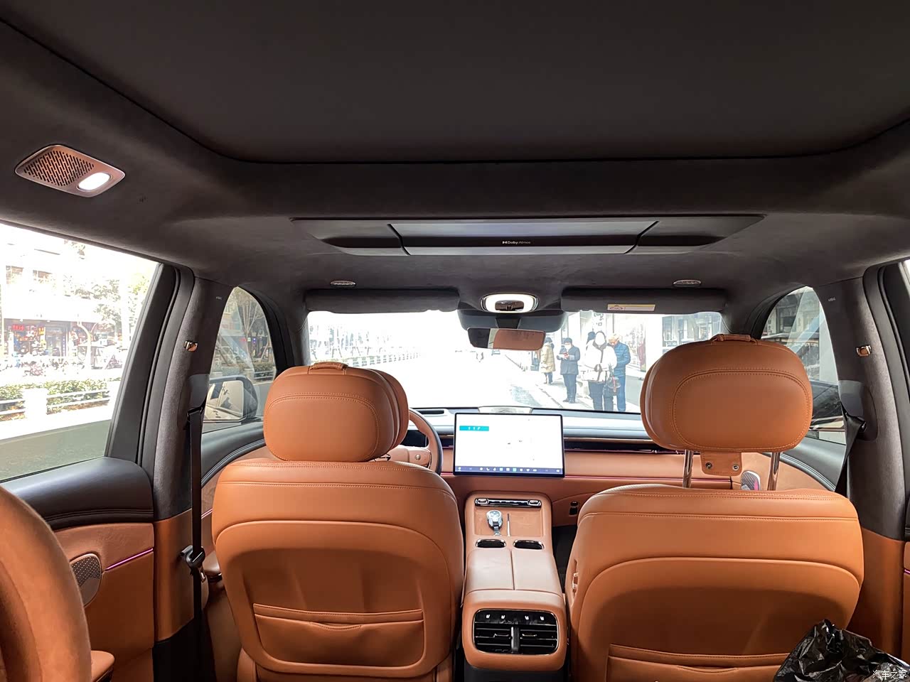 车内都是napa真皮材质,而且车内没有异味,要是新车买回家,几乎不用散味,而且还自带头枕,这个头枕还超级舒服,还有定义的脚垫,比普通的那种好打理,还很贴合车,后排17.3英寸的大屏真是移动的大电视,高清还抵蓝光,对视力也比较好。